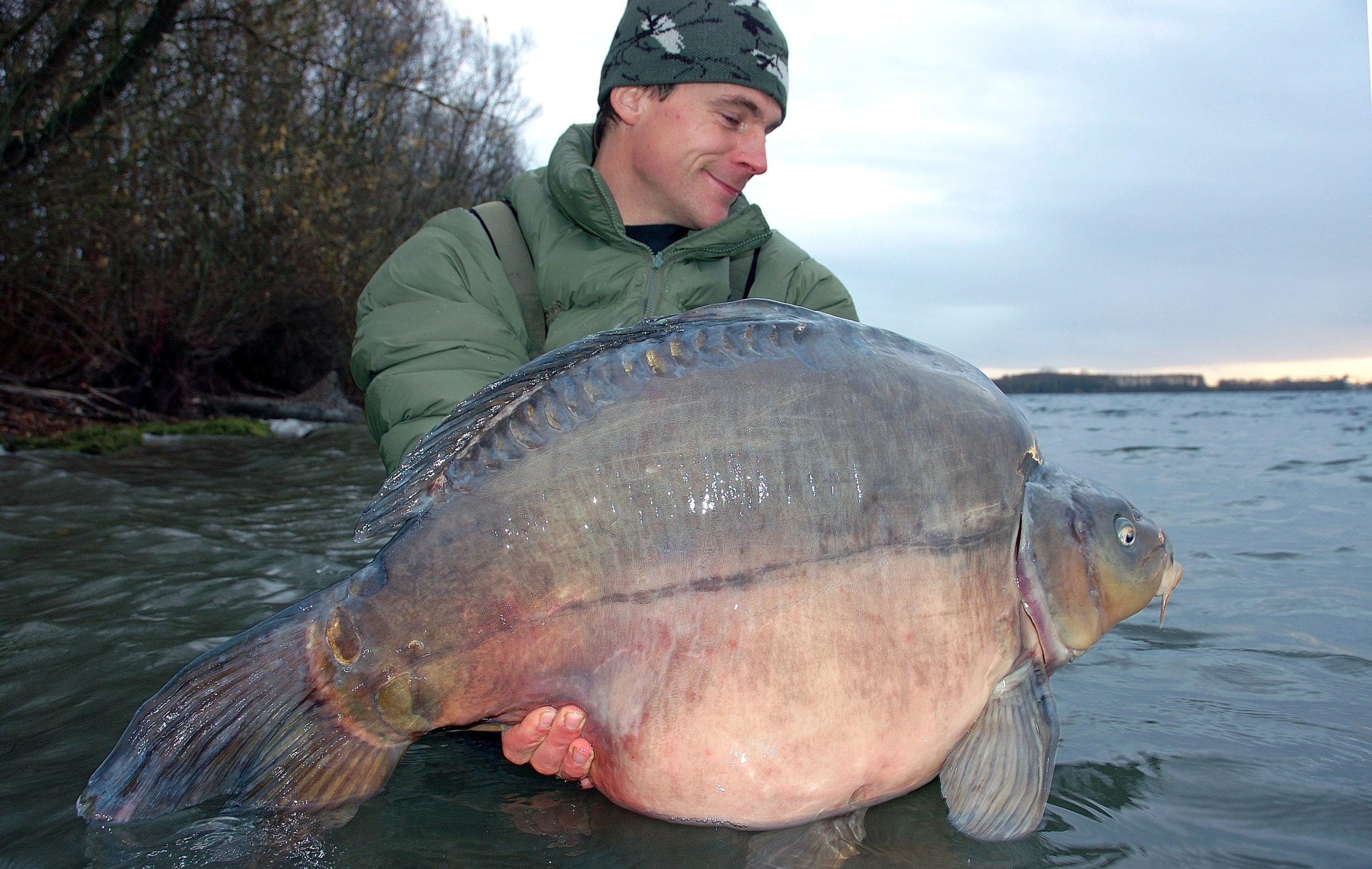 Wees extra voorzichtig met een wintervis, zeker als er wat wind staat en de temperaturen zo rond het vriespunt zijn. Een karper kan dan gemakkelijk bevriezingsverschijnselen krijgen, met alle gevolgen van dien. Daarom is het raadzaam om de vis goed nat te houden. Dit dunne laagje water beschermt de vis net voldoende om even een foto te nemen. Wel dien je de vis bij aanvang van de fotosessie even weg te hangen in een bewaarzak in het water. In de tussentijd kun je op je gemak de camera juist instellen, zodoende wordt het verblijf op het droge sterk gereduceerd.