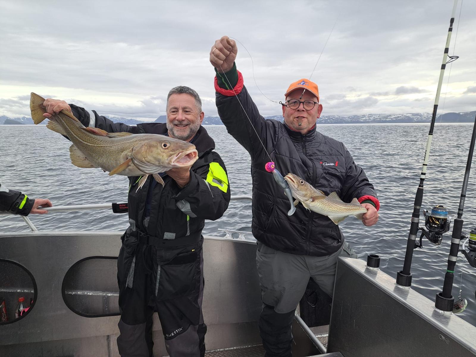 Arnoud, Ed, Marco en Allard zijn vandaag op pad geweest en hebben verschillende stekken afgevist aan de noord- en noordoostzijde van Hammerfest en daarbij hebben ze redelijk succesvol weten te vissen. Zij hebben geen enorme vissen gevangen maar wel een redelijk aantal tot zo’n 90 cm en hebben de dag zo lekker weten te vissen. Ook hier heel veel koolvis en duidelijk minder kabeljauw.