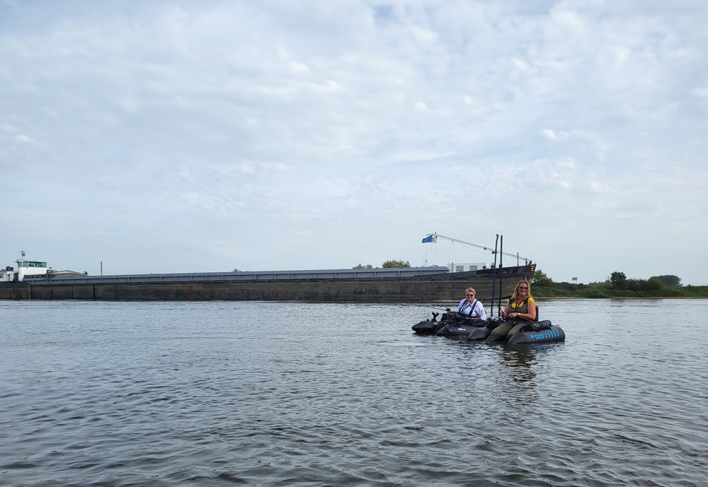 Na wat gevogel met de afstandsbediening om mijn nek heb ik het vaar-kunstje helemaal door en vervolgen we onze weg richting de bubbels! Ik vind dit dus nu al helemaal leuk, met je beentjes zo vrij door het water varen. Deze plek is echt weer een prachtig stukje Nederland en vanaf het water is het nog mooier! De bellenbaan komt steeds dichterbij en wat is dat bizar zeg, nog nooit gezien! Over de hele breedte een strook vol stroming en luchtbellen in de Maas, wat gaaf!