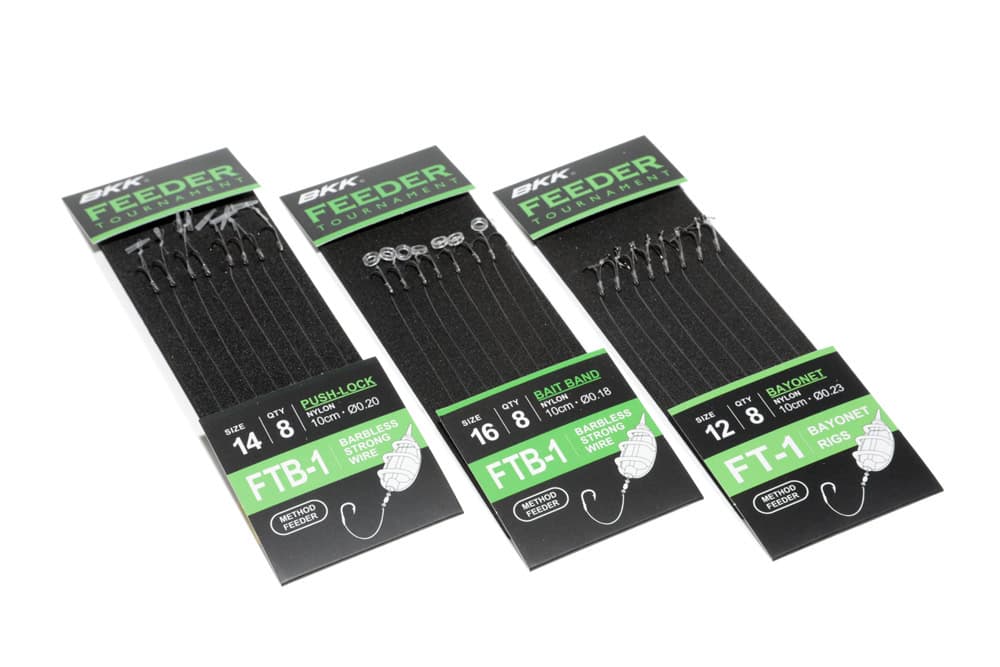 De BKK Feeder Tournament onderlijnen worden door Hengelsportzaak van de Ven in diverse diameters en haakmaten geleverd met een nylon Push-Lock, een Bait Band of een Bayonet.