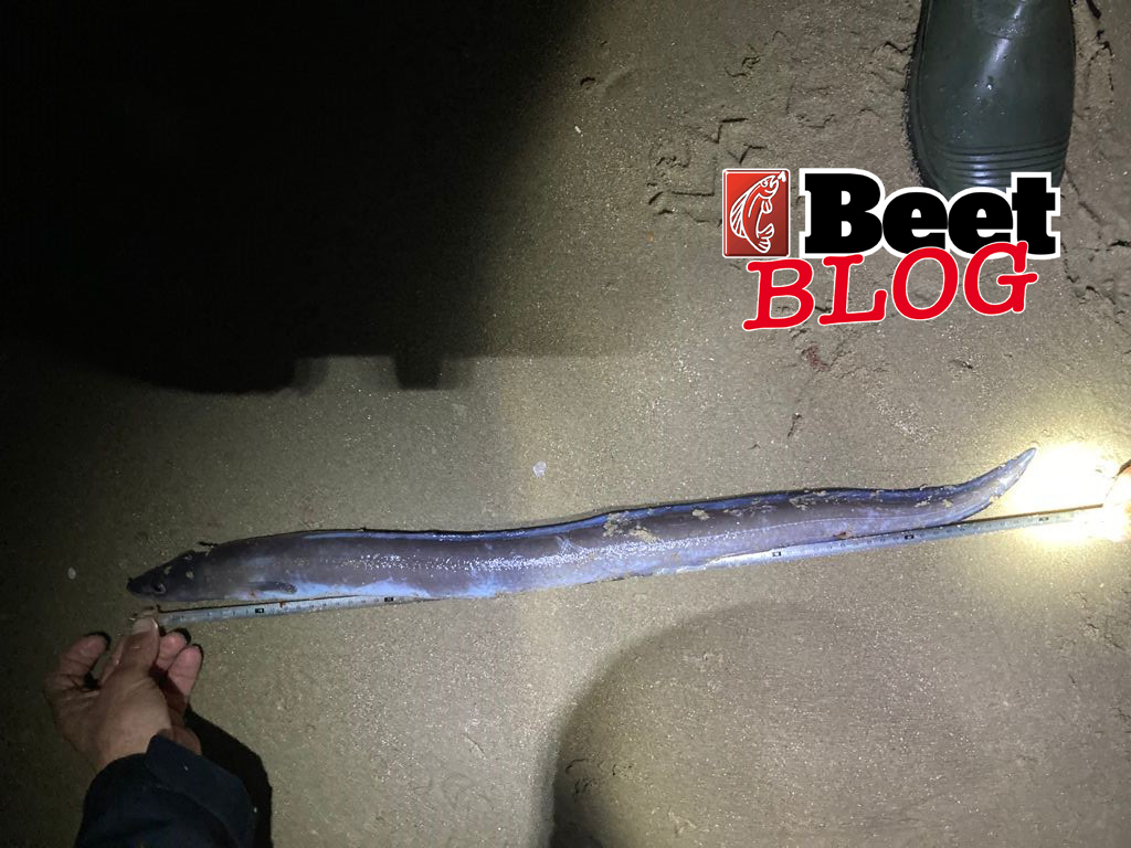 Dirk: “Dit Zeeuwse deel tussen Vlissingen en Domburg is natuurlijk een prachtig visgebied waar ook tong, zeebaars en haaitjes buitgemaakt kunnen worden. Ik viste de grote steekzager onder de dobber boven een steenstort en kreeg op zeker moment een aanbeet. De vis zwom zich direct vast in de stenen, maar na een alles-of-niets poging kwam hij toch los. Eenmaal geland dacht ik aan een mooie paling, maar al gauw kwam het besef dat er een kongeraal aan de haak zat! De vis werd opgemeten en op 72 cm vastgesteld. Waarschijnlijk was deze conger een vaste bewoner van de steenstort. Vorig jaar werden er in Nederland en België al meerdere gevangen, wat duidt op een waarschijnlijke trend (lees ook het volgende artikel – red: https://beet.nl/conger-dorade-en-goudharder-opkomst).