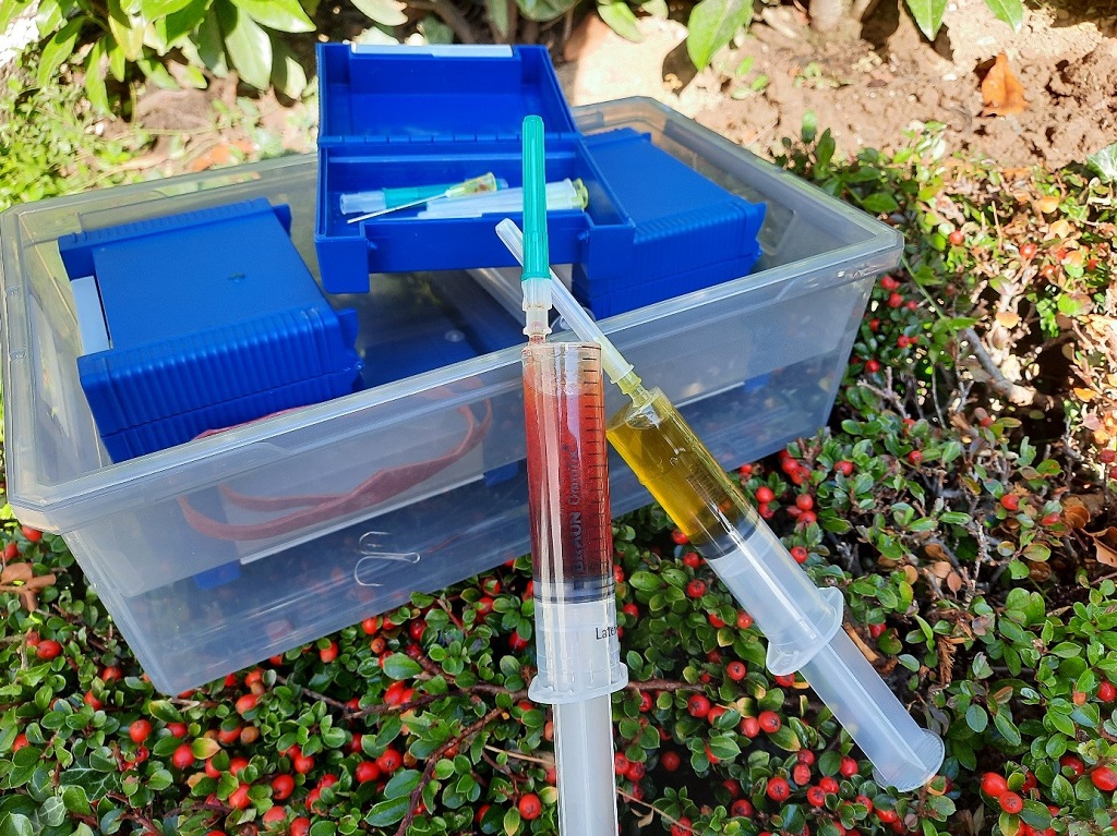 Daar de snoekpopulatie in het zuiden van Limburg minder is dan in het noorden des lands probeer ik mijn aas zo attractief mogelijk te maken. Het is intussen alom bekend dat de snoek ook graag met zijn neus op jacht gaat. Vooral de grote trage moeders leven vaak als pure aasvreters. Daarom is het tijd om je aasvis te pimpen zodat het sneller gevonden zal worden door die grote mama’s. Er bestaan een aantal mogelijkheden om je aasvis te prepareren en te presenteren.  Een van deze is het aantrekkelijker maken door middel van geur en kleurstoffen. Hieronder geef ik wat voorbeelden.