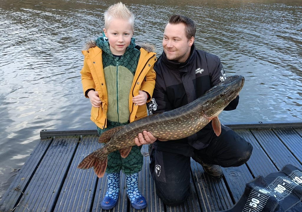 De hengel boog helemaal door en wist het meteen: dit een hele grote snoek. Wij probeerden hem binnen te halen maar zodra die ons zag met onze hoofdlampen, ging de vis er weer ervan door, dwars door de slip. Toen hij moe werd kregen we hem dichtbij om te scheppen. Na 3x scheppen kregen wij hem erin. Hij paste amper! Het was een hele dikke snoek. Zodra we hem onthaakt hadden, legden we hem op het meetlint en konden het nauwelijks geloven: 119 cm lang! Een avond in ieder geval om nooit vergeten…