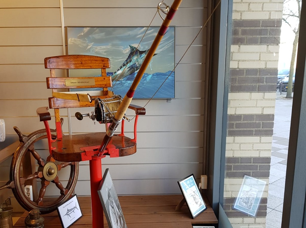 ‘Ik zag de vechtstoel voor het eerst in 1995 en al die tijd heb ik ervan gedroomd om hem naar Vlissingen te halen.” Aan het woord is Janpeter Davidse, beter bekend als de uitbater van de Hengelsport Janpeter hengelsportwinkel in Vlissingen. Deze kenner van de hengelsport noemt zijn missie dan ook geslaagd: het is hem namelijk gelukt om een authentieke big game vechtstoel van de beroemde schrijver, Nobelprijswinnaar en grotevissenvanger Ernest Hemingway (1899-1961) in zijn etalage aan de Coosje Buskenstraat 200 te krijgen. In deze blog vertelt Janpeter de achtergronden over deze opmerkelijke actie.