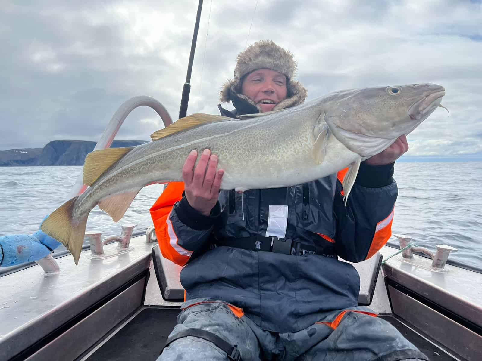 Uiteindelijk haakte ik er 1 van rond de 90 cm maar die konden we net niet aan boord krijgen. Dus dat was uiteindelijk geen groot succes maar daarna kozen we ervoor om op koolvis te gaan belagen. En dat werd wel een succes. Op 100 meter diepte was het een kwestie van hangen en zakken. Het waren mooie exemplaren van zowel kabeljauw als koolvis.