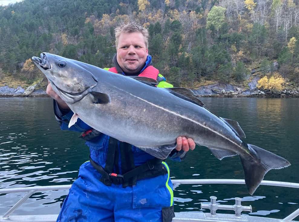 In de kleine straumen lagen een paar boten gericht te vissen op de mooie koolvissen, Stein en Thomas waren weer flink aan het ‘harken’, ze vingen vele vissen tot een cm of 90! Slag op slag knalden ze de vissen eruit! De truc was: een man varen, de andere vissen, met de boeg van de boot tegen de zware stroming in varen en dan met een lichte shad zo ver als je kunt tegen de stroming in werpen, BAM!