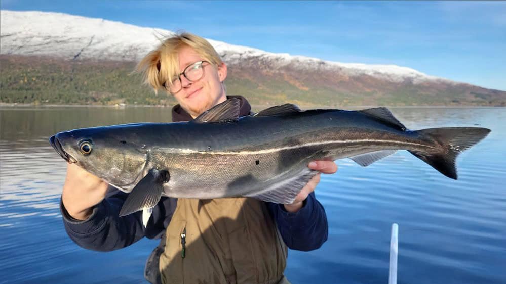 Lesley, Paul en Harm hebben bewust gekozen voor het achterste stukje van het fjord. Het was immers windstil, zo gezegd zo gedaan half uurtje varen en de mannen laten hun shads en pilkers zakken, al snel volgen er meerdere vissen in de boot!