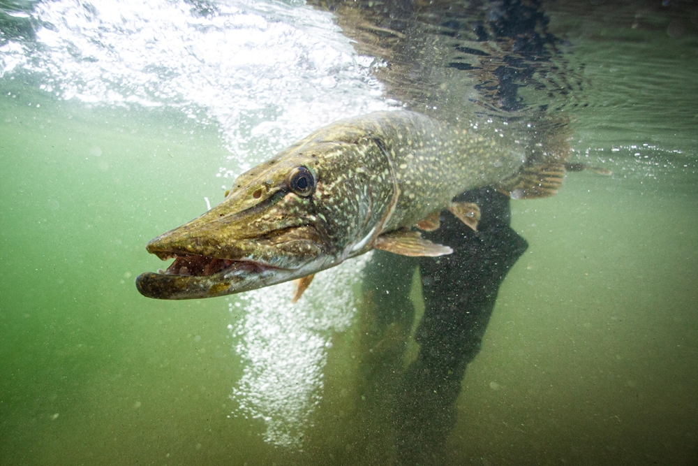 Ik sta in het water tot aan mijn middel, maak worp na worp, terwijl mijn swimbait door het open water beweegt en de wind in mijn gezicht blaast. Langzaam draai ik mijn aas binnen, kijkend hoe de gevlochten lijn door mijn ogen loopt, wanneer plotseling iets groots mijn aas grijpt en een schok door mijn hengel en arm stuurt. Ik sla hard aan en voel meteen het zware, trage kopschudden van een onverzettelijke vis in het heldere, diepe water. Dit is het gevoel waar ik het voor doe…