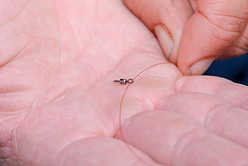 - Plaats nu een safetybead wartel op het overgebleven stuk lijn.