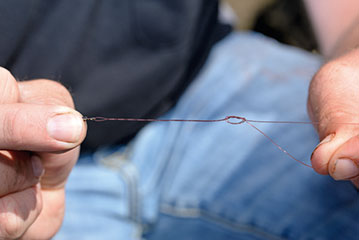- Leg nu een knoop in de lijn, 2x doorhalen.