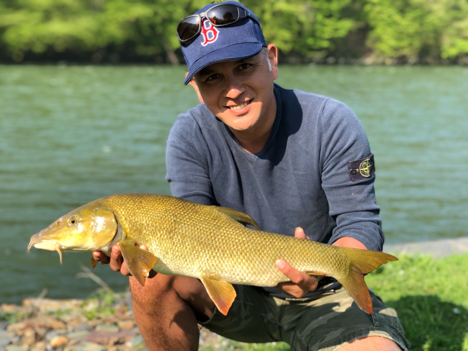 Wanneer het Reggy zijn beurt is gaat de stroomafwaarts gelegen hengel helemaal krom en spint de beetrunner zijn melodie! Niet veel later ligt een sterke 70’er barbeel van ruim 8 lb op de mat ligt: een topper! Ook vangen we beide eindelijk een prachtige kopvoorn en ik mag mijn pb daarbij verbeteren met een schitterende 57 cm!