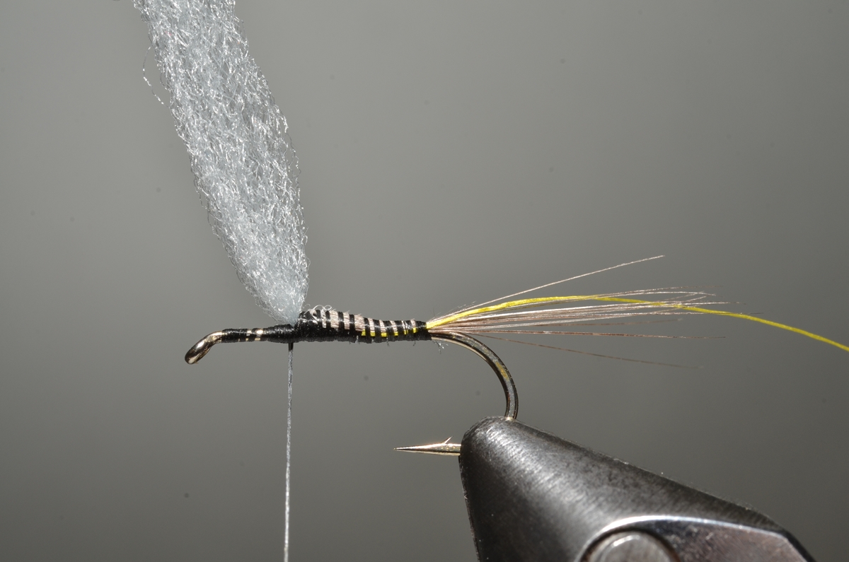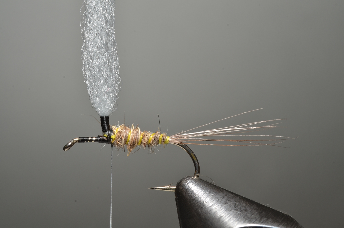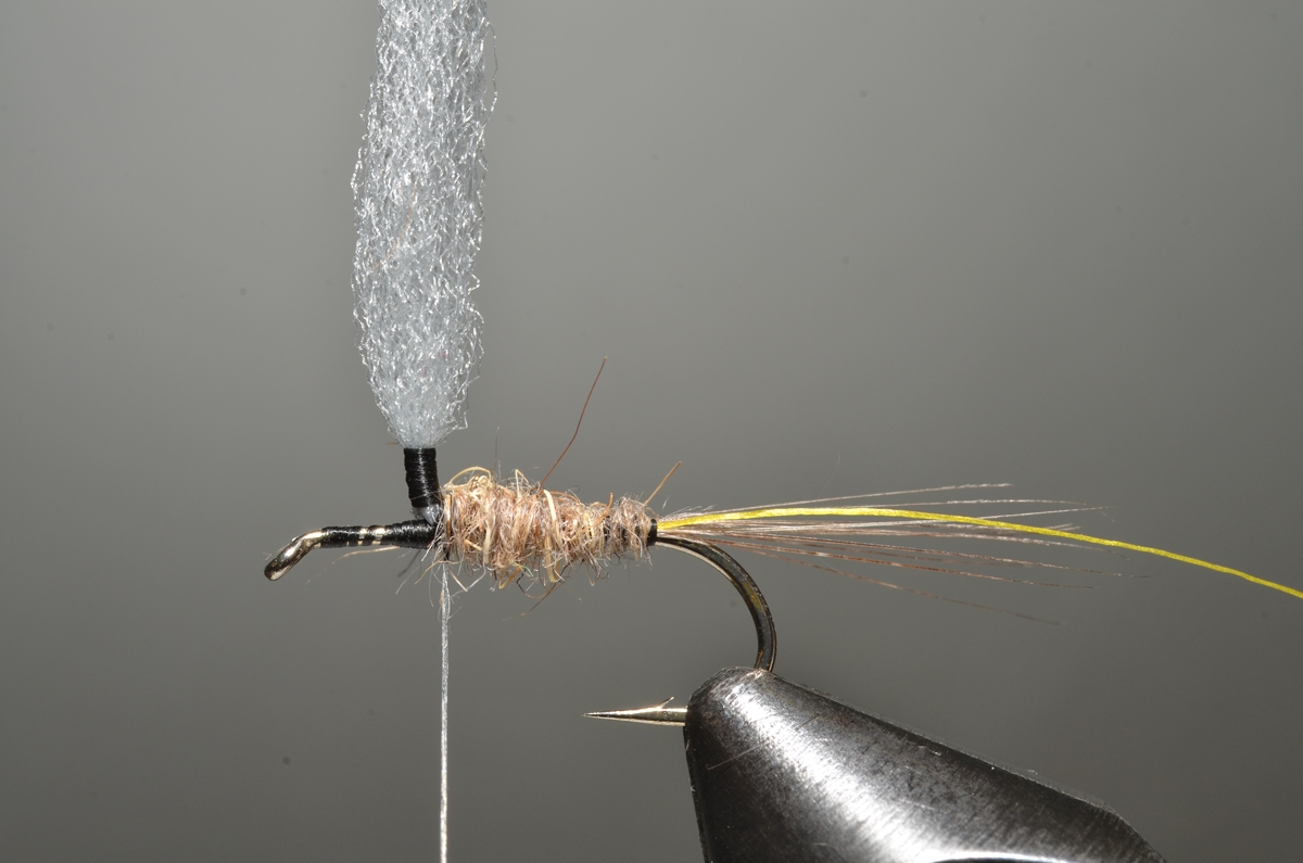 Achterlijfje en thorax: hare’s ear dubbing.