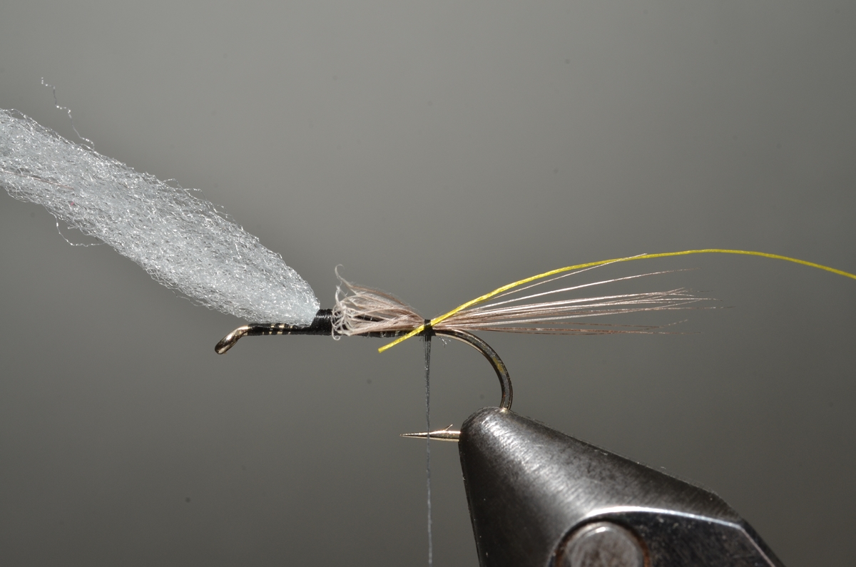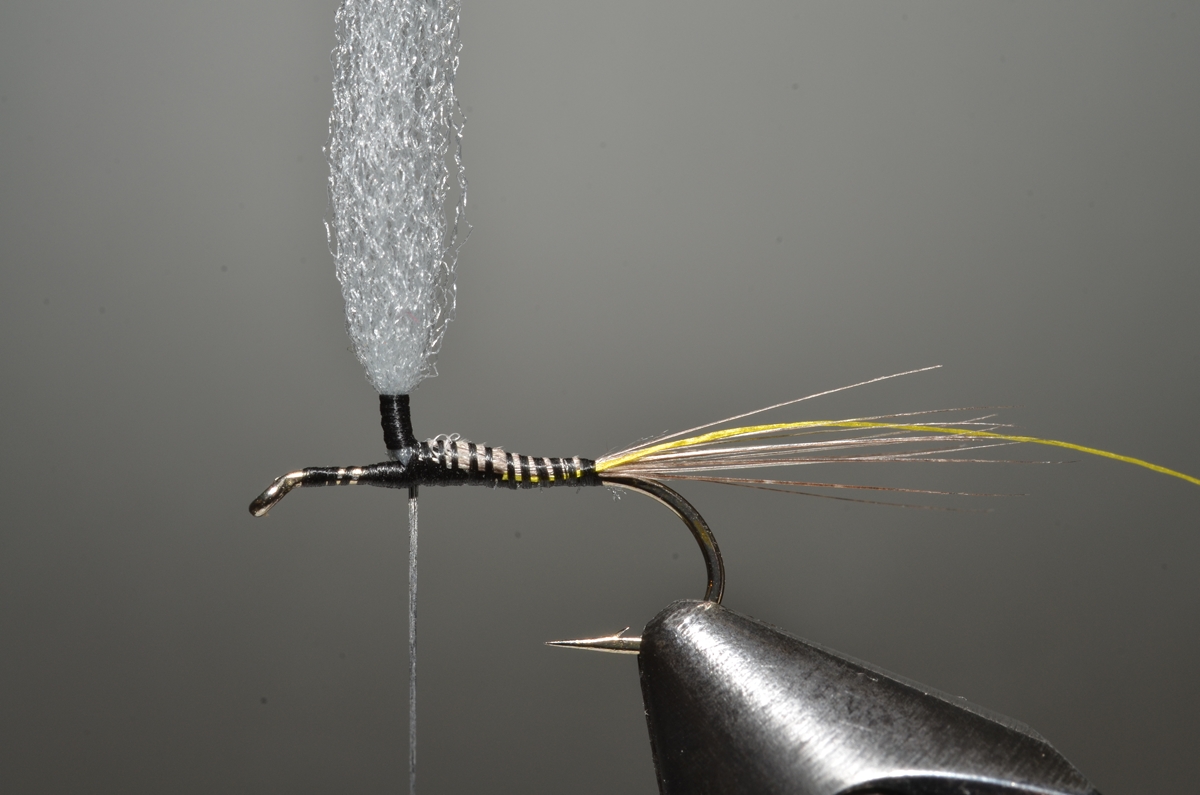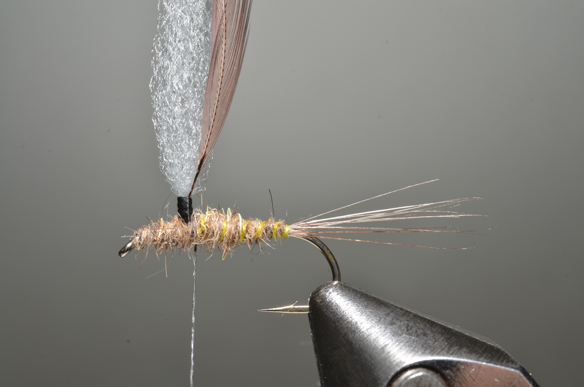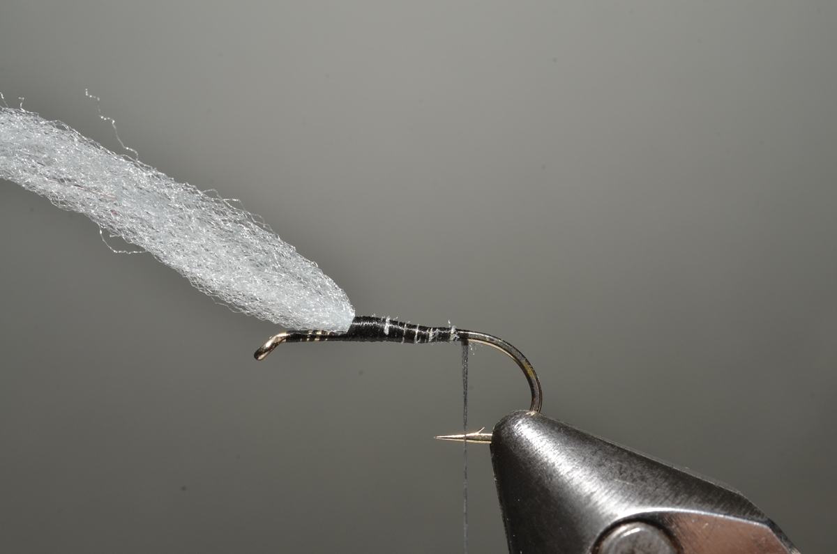 Achterlijfje en thorax: hare’s ear dubbing.