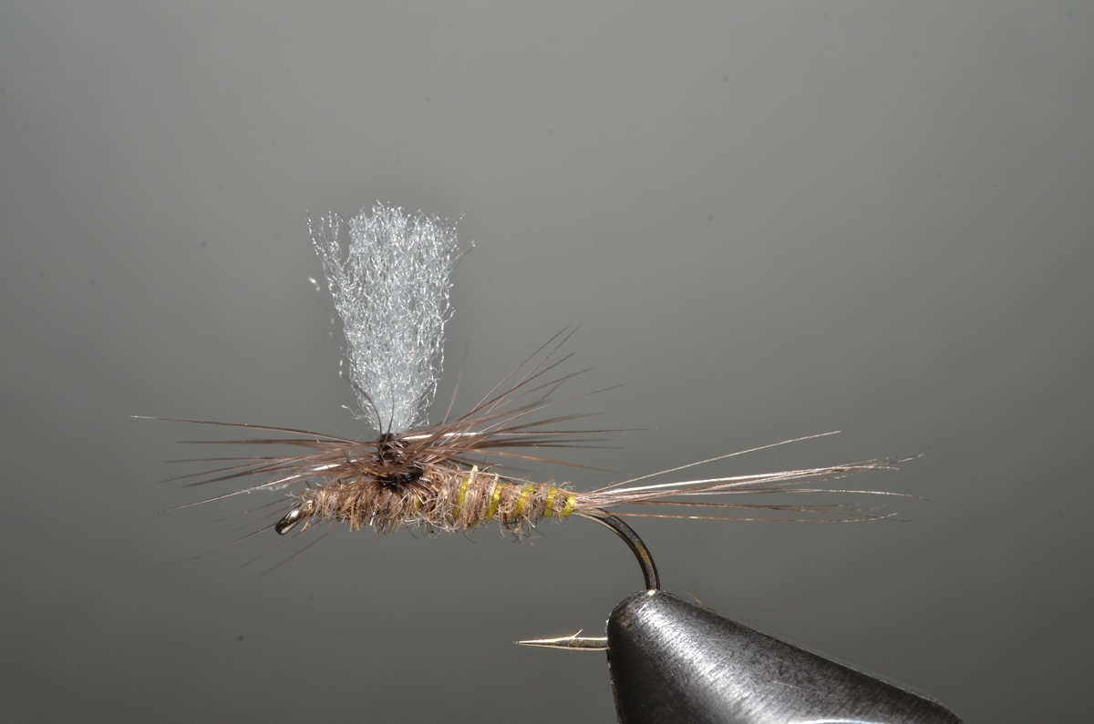 Het binden van parachutevliegen vormt voor heel wat vliegbinders nog steeds een te hoge drempel. Dit hoeft helemaal niet zo te zijn. Vermoedelijk heeft het ermee te maken dat de ‘klassieke’ manier om een parachutehackle af te binden een beetje afschrikt. Er is echter ook een poepsimpele manier om een mooie parachutehackle te wikkelen en een mooi en tegelijkertijd effectief vliegje uit de vice te toveren.