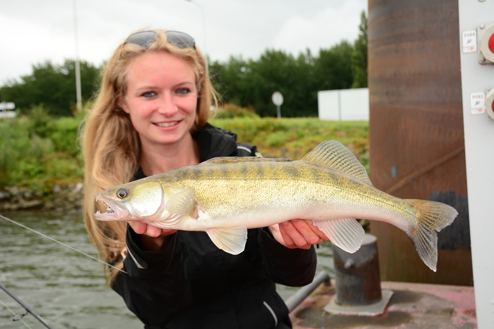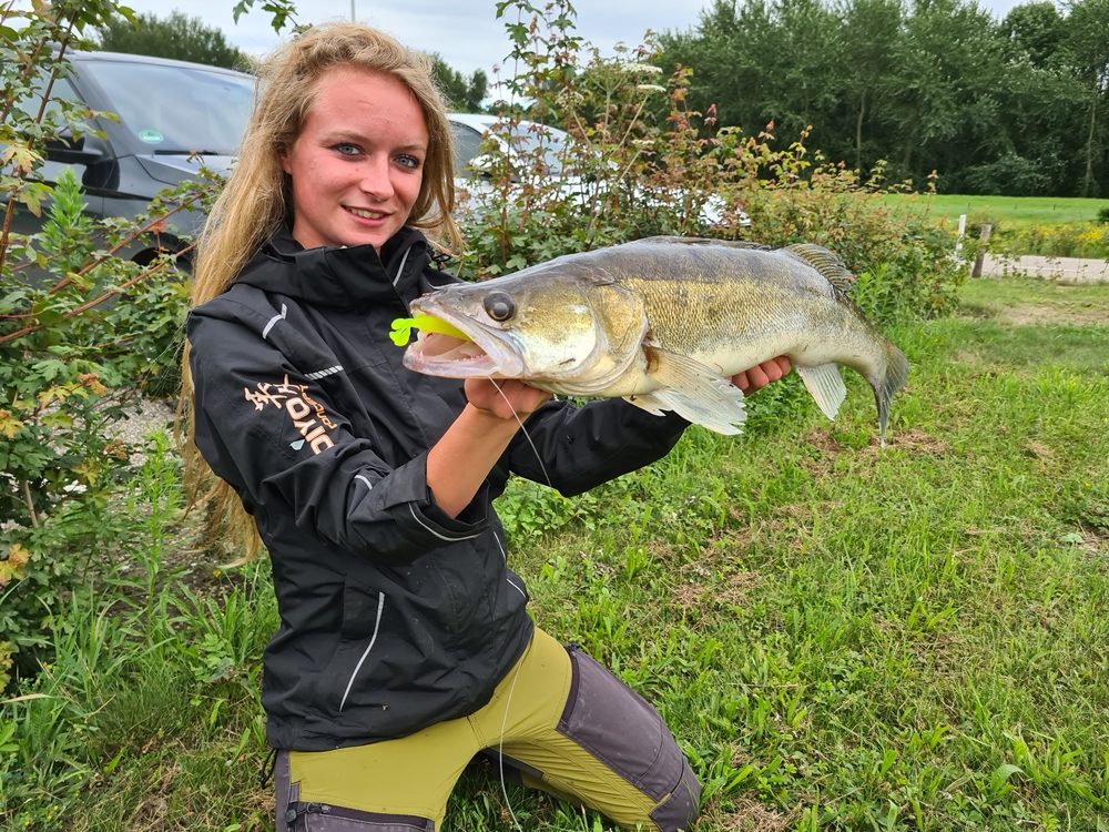 Jasmin besluit verder te vissen met de knalgele grondel-imitatie en even later haakt ook zij een betere vis. Dit keer geen snoek, maar een grote snoekbaars. Na een spannende dril ligt er een vis van 76 centimeter op de mat. Zo’n formaat kantsnoekbaars vang je beslist niet iedere dag. Aan het einde van de dag kunnen we concluderen dat er een moois lijstje vissen bij elkaar is gevangen. Als je geen Duitse visplannen hebt, dan is visvakantie in eigen land helemaal niet zo verkeerd!