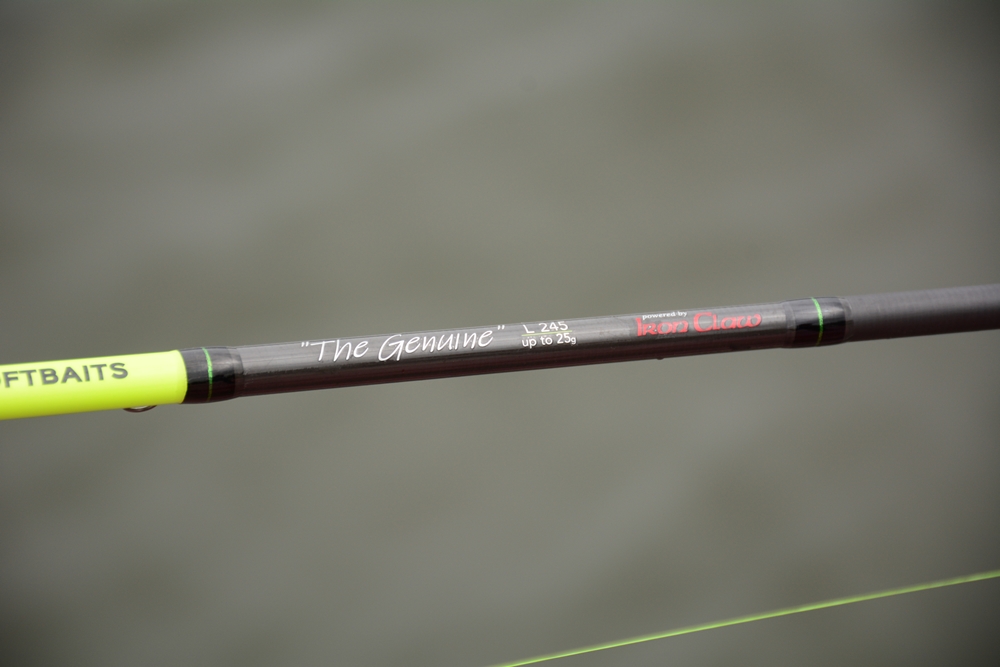 De eerste stek betreft een drijvende aanlegsteiger voor onder meer watertaxi’s, die buiten de hoofdstroom ligt. Nadat Jasmin wat info heeft ingewonnen over de waterdiepte, ongeveer 5 meter, besluit ze aan de slag te gaan met een 12,5 cm Moby Softbait V-Tail 2.0 op een 10 grams loodkopje. Omdat dit gebied vanaf de kant onbekend is voor Jasmin heeft ze van alles meegenomen qua materiaal. Als hengel maakt ze een Iron Claw Genuine 245 cm klaar, waar ze overigens ook de rest van de dag mee zal vissen. De perfecte softbaithengel voor het vissen met kunstaas tot 25 gram; een gevoelige top, een licht eigen gewicht (135 gram) en een behoorlijk progressieve buiging. “Zodat je ook aan kleinere vissen een mooie dril beleeft”.