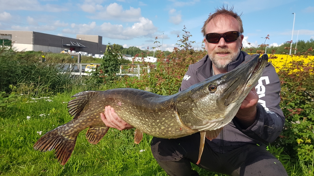 Dat blijkt de juiste keuze, want het is Alex die als eerste een vis haakt: een grote snoek. Dit moet wel een meterplus vis zijn… Als even later de brede rug het schepnet inglijdt volgt er een juichkreet. Maar liefst 108 centimeter; niet gek op een lichte jighengel!