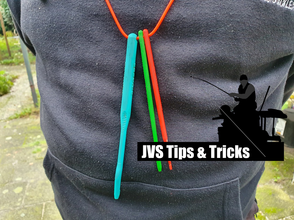Noem me maar ouderwets, maar ik gebruik altijd een stukje elastiek. Ine en lus heb ik dat om mijn nek heb hangen, met daarin verschillende maten hakenstekers. Je kunt ze zo nooit verliezen tijdens het vissen en sneller kun je de juiste maat niet vast hebben. Na het vissen rol je de elastiek om de hakenstekers en gaat alles in de viskoffer. Simpel en handig. Daar houd ik van.