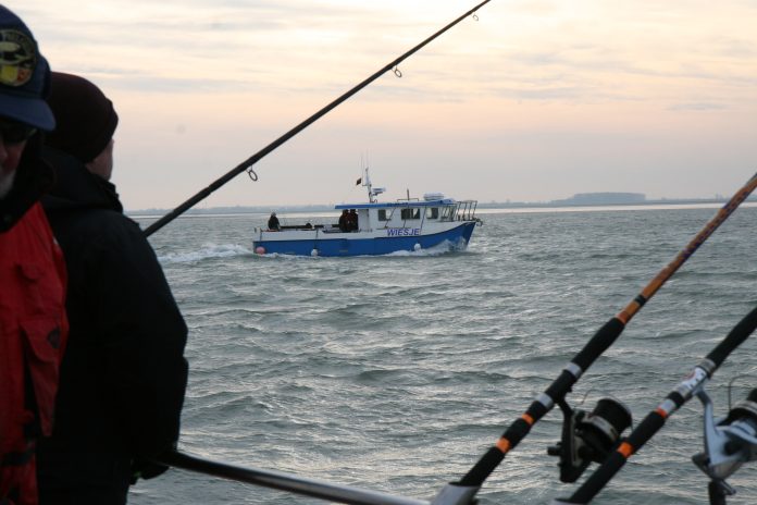 Niets van dat al. We zijn gewoon op de Westerschelde en we liggen op wijting te vissen. Degenen die er wel vaker vana...