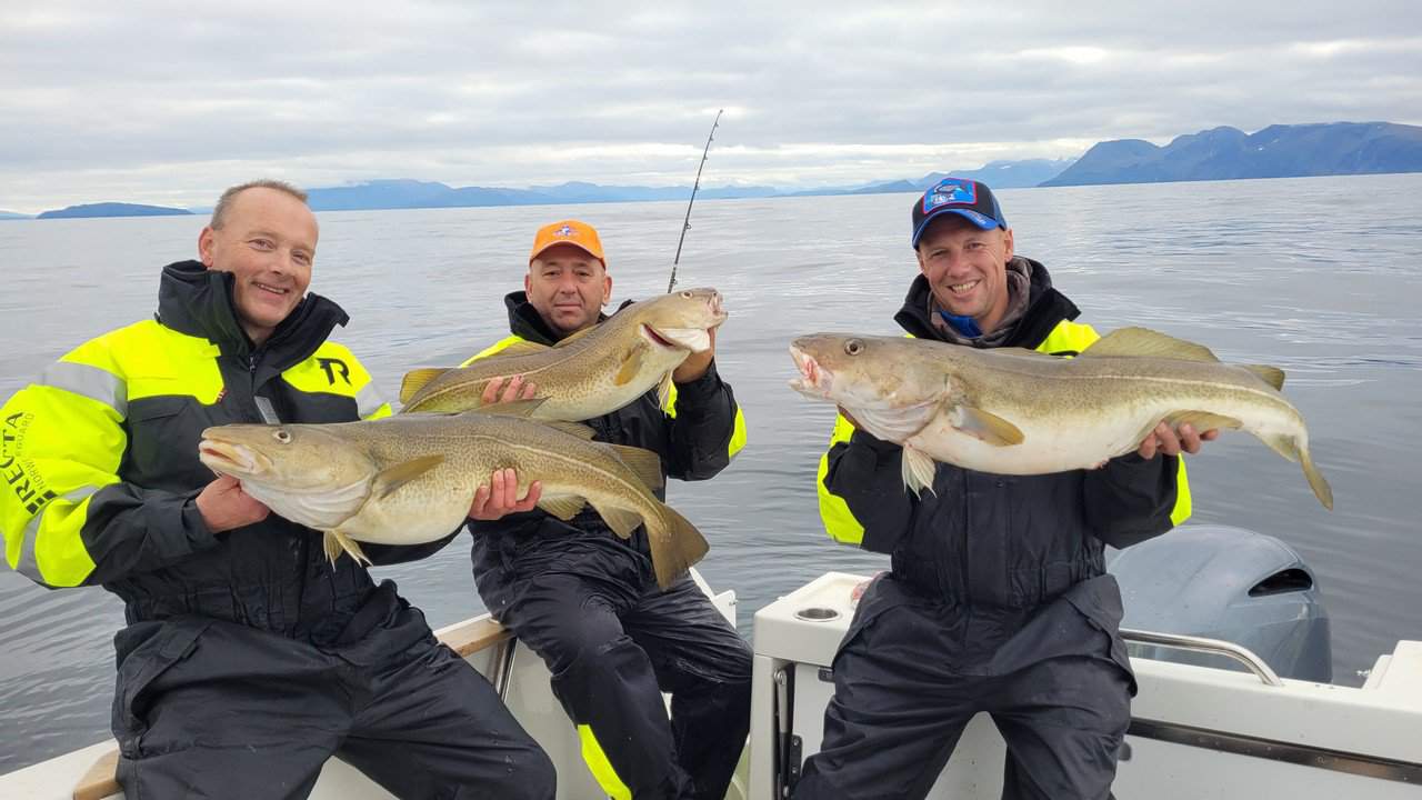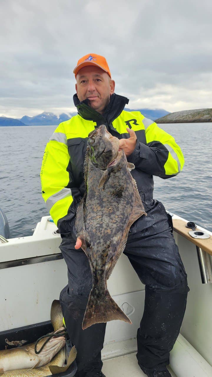 Feliks de Lange was met zijn groep nietsvermoedend op pad gegaan en daar hadden ze ook 3 heilbotten en verscheidene mooie kabeljauwen en koolvissen gevangen. Niet de grootste en niet de meeste maar wel consistente visserij net oosten van de locatie Loppa aan de open zee.