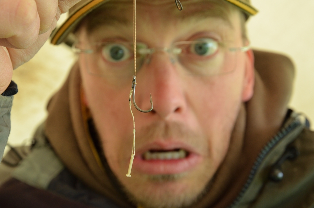 In de ochtendschemer word ik gewekt door het geluid van vogelgezang. Ook al houd ik van het ochtendconcert, ik had liever dat een van mijn beetmelders de wekdienst had overgenomen. Maar ze blijven koppig zwijgen en op dit water is die vroege ochtend juiste het moment dat het moet gebeuren… Een uur en twee springende karpers op mijn stek later, heb ik nog steeds geen aanbeet gehad. Er klopt hier iets niet. Ik besluit om mijn hengels binnen te draaien en opnieuw in te werpen. Wanneer ik de montage uit het water lift zie ik waar ik al bang voor was: een lege hair, aas dat weggevreten is door kleine vis…