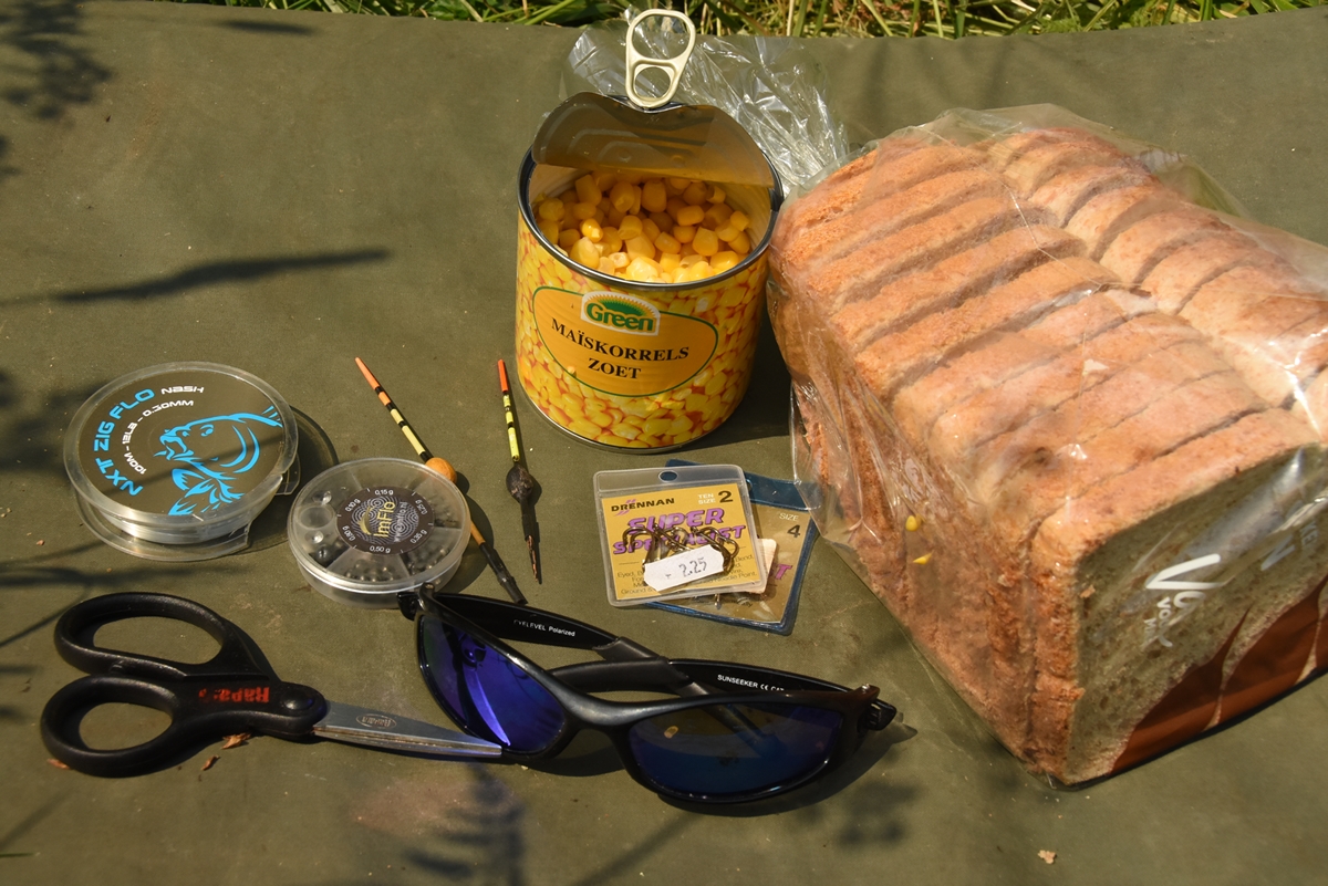 Zo’n zware lijn werpt natuurlijk niet geweldig. Normaal gebruik ik gewoon gesneden brood, want ik vis meestal met kleine korstjes en kort onder de top. Maar wat als ze net buiten werpafstand liggen? Bij het vissen tussen planten wil ik niets anders dan een haak aan de lijn hebben. Een eventuele dobber of floater controller als werpgewicht blijft overal achter hangen, wat zeer onwenselijk is. Een manier om de vissen op afstand toch te bereiken, is het gebruik van ongesneden brood. Hier kun je makkelijk een flinke drijvende korst van maken! Heb je geen ongesneden brood voorhanden, dan is er nog een mogelijkheid. Monteer eerst gewoon een normaal korstje aan de haak. Scheur de randen van een snee brood af en vouw het binnenste gedeelte om het korstje heen. Dit is zwaar genoeg en blijft toch goed drijven. Als dit buitenste gedeelte, na een tijdje in het water, loskomt, houd je nog steeds de originele korst over. Dit ligt dan vlak bij het grote stuk vrijgekomen brood. Hierdoor wordt de kleinere korst al snel als ‘veilig’ gezien, dubbel voordeel!