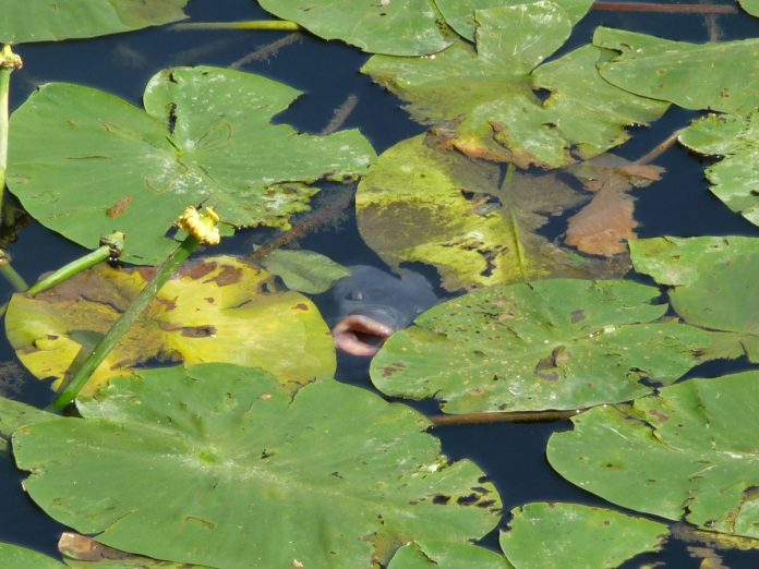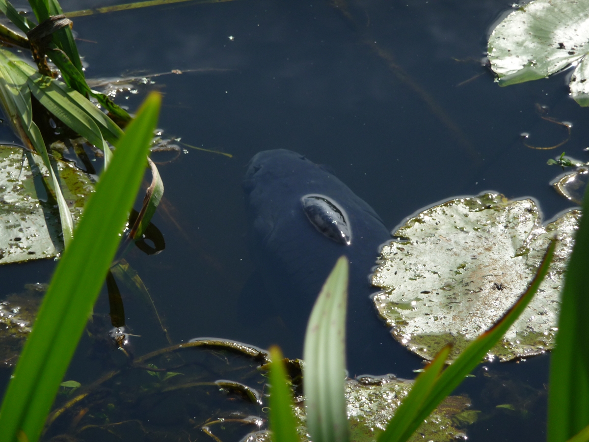 Meestal zoek ik een specifieke vis uit, zo ook nu. Maar deze ligt wat verder uit de kant, helemaal verscholen in het dichte plompenveld. Ik kan niet zien of het een schub of spiegel is. Alleen het omhoogduwen van een plompenblad verraadt de vis. Een korst vliegt over het water en langzaam trek ik deze naar de vis toe. De laatste centimeters gaan uiterst langzaam om de vis niet te laten schrikken. Als de korst naast de karper ligt, is het afwachten.