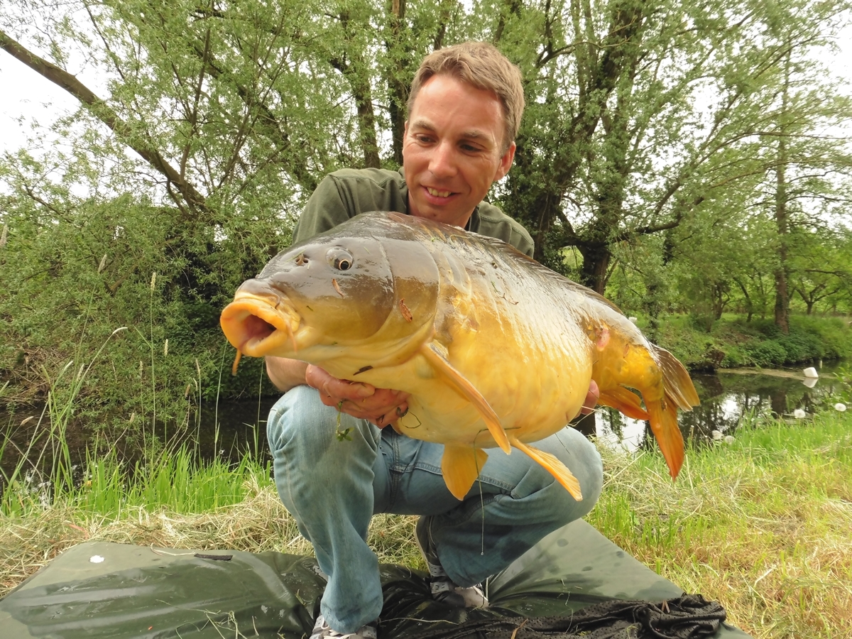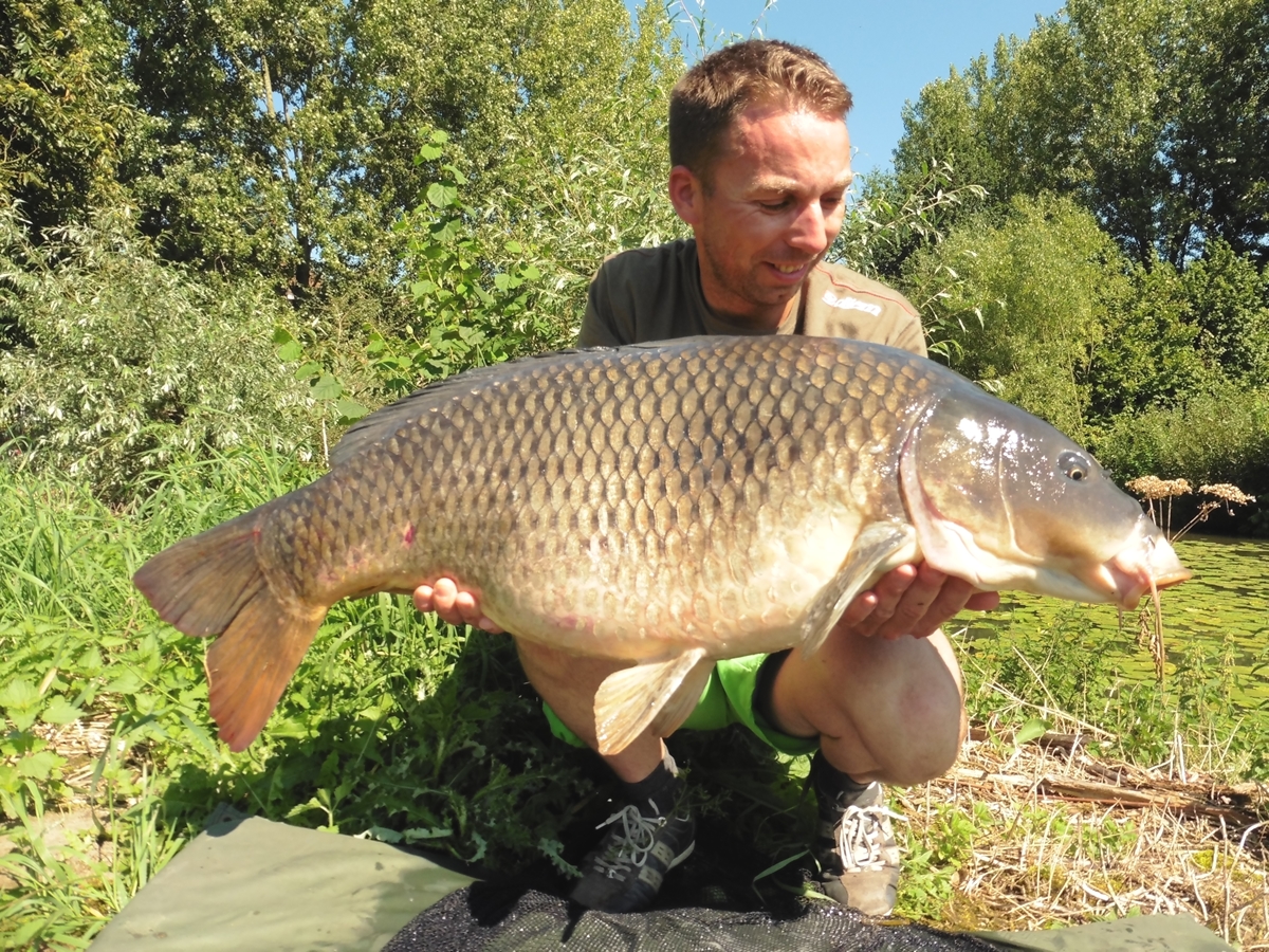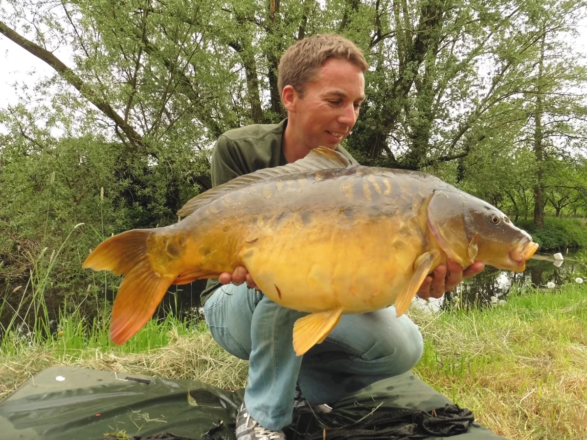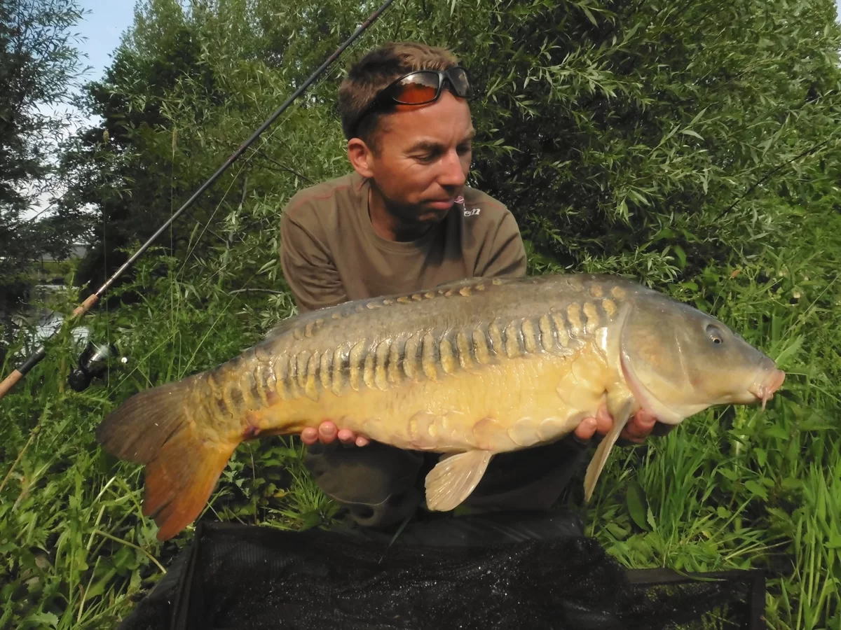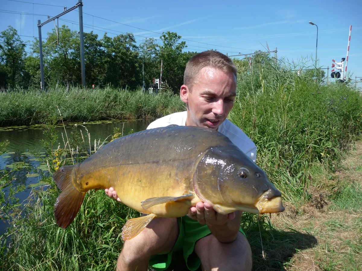 Een van de plekken waar ik ieder jaar weer terugkom, is een watertje waar zich rond de paai altijd flink wat karpers verzamelen. Meestal vissen van gemiddeld formaat, maar er zitten vaak spiegels met mooie beschubbing en rijenkarpers tussen! Het is aangesloten op een riviertje, zodat een uitschieter altijd tot de mogelijkheden behoort.