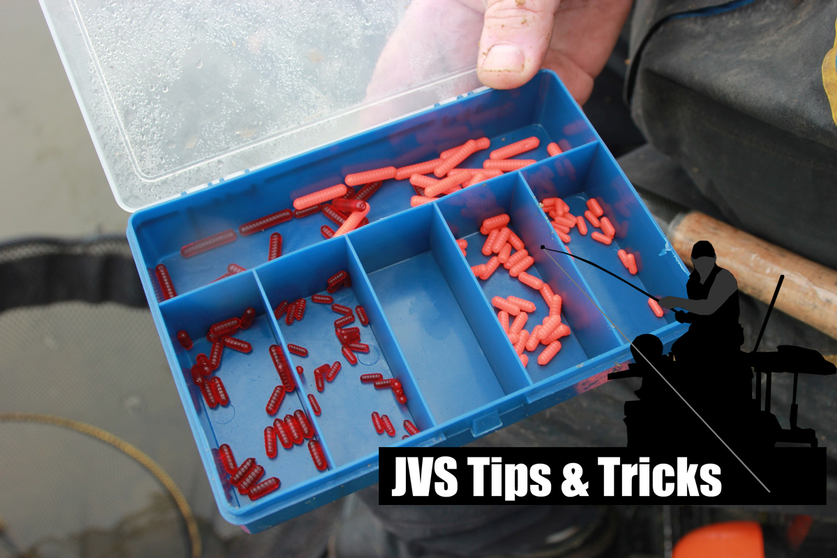 Kunstaas is er dus in allerlei vormen. Persoonlijk vind ik dat het zo zacht mogelijk moet zijn, zonder dat het van de haak gaat. Verder is ook de kleur belangrijk. Misschien is het een kwestie van vertrouwen, maar in negen van de tien gevallen heb ik of een rood of een fluo oranje kunstaas aan de haak. Fluo oranje meestal wanneer het water flink gekleurd is. Rood in bijna alle andere gevallen. Hoe meer dat rood lijkt op de kleur van een muggenlarve of laat ik zeggen op de rode kleur van Rubiver, hoe beter het is wat mij betreft.