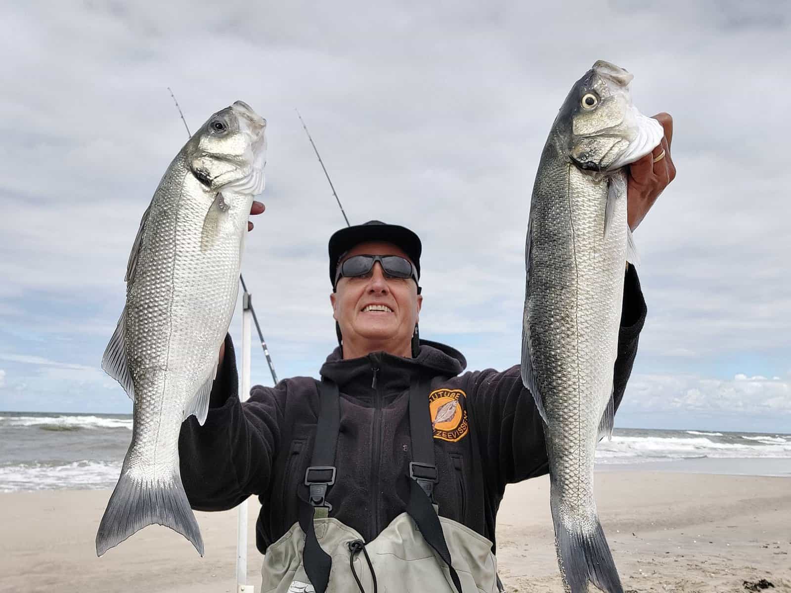 LUC MOM – Het is echt een van de mooiste visserijen die je kunt beoefenen. Ik beoefen deze visserij al ruim 35 jaar en heb het helaas wel zien teruglopen.Voor de zeebaars heb je wel wat branding nodig dus wind vanuit zee. Anders hebben de krabben zeker in de zomer teveel vat op je aas. Maar ook de zeebaars is bij een rustige zee vaak niet actief. Maar “eens” zal er gegeten moeten worden!