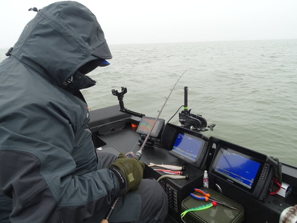 De meerval zwemt telkens van ons vandaan wanneer we deze willen aanvissen, maar door scherp te sturen met zijn Yamaha weten we de grote vis telkens weer in de twee schermen te vatten. Drop na drop wordt genegeerd, maar opeens wijst Goran naar het scherm: “Kijk! De vis houdt nu zijn kop omhoog. Dat betekent dat hij geïnteresseerd is in wat er boven hem gebeurt.” En opeens, na weer een welgemikte drop, versmelten de signalen van vis en shad met elkaar en slaat Goran de...