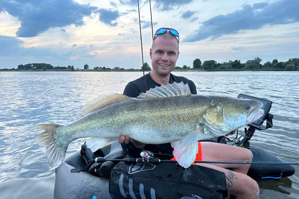 Hier het verhaal van Wesley over deze onvergetelijke vangst: “Wat begon als een flop werd toch een geweldige avond! Mijn maatje Dirk en ik waren op het werk en wilden graag gaan bellyboten, dus zo gezegd zo gedaan. Wij de spullen gepakt en naar de waterkant gegaan. Eenmaal aangekomen op de stek bleken de accu’s van mijn elektromotor leeg te zijn dus dat werd flipperen op de rivier (een hele opgave!)…
