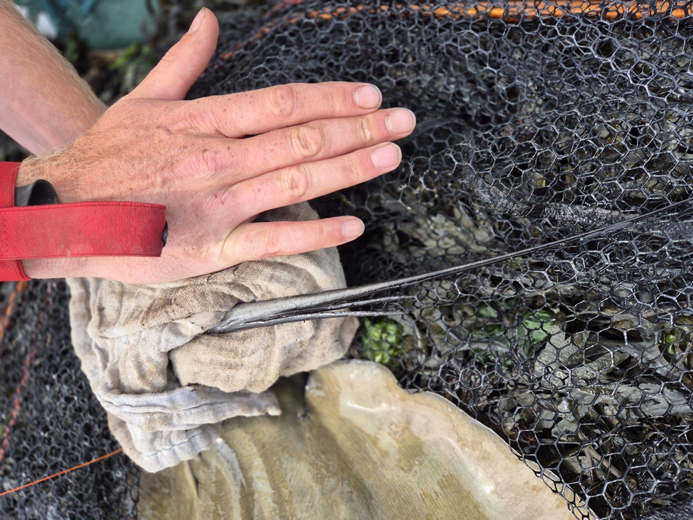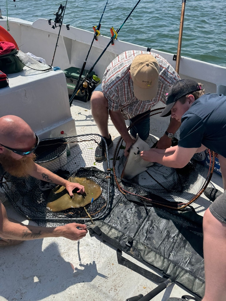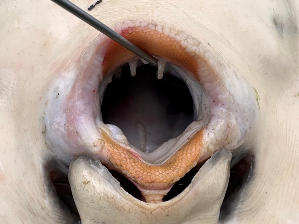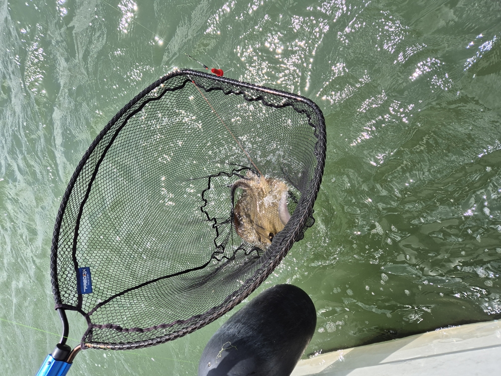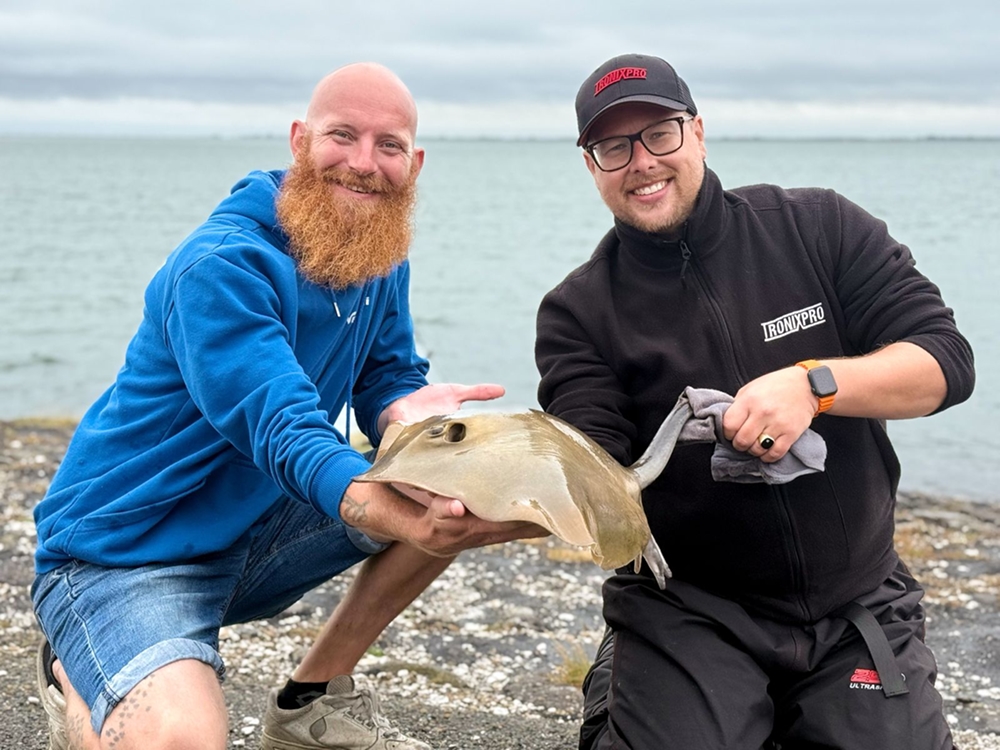 Zorg te allen tijde dat je een groot schepnet bij je hebt! Het is vrijwel onmogelijk een rog te landen vanaf de boot zonder. En dat is niet alleen zo vanwege de gevaarlijke stekel, maar ook vanwege het gewicht van deze gevleugelde vissen. Roggen van 70/80 cm breed zijn absoluut geen uitzondering en deze zitten vaak over de 20 kilogram! Het gebruik van een onthaakmat of beter nog een zogenaamde ‘cradle’, is zeker ook aan te raden. In die laatste blijft de vis ook een stuk beter veilig liggen en kun je als eerste een doek om de stekel binden voordat je de rog gaat onthaken. Probeer de rog zoveel mogelijk op zijn buik te houden in het schepnet, want de slijmlaag op de rug beschadigt erg snel en we willen de rog natuurlijk zo mooi mogelijk weer terugzetten en op de foto krijgen.