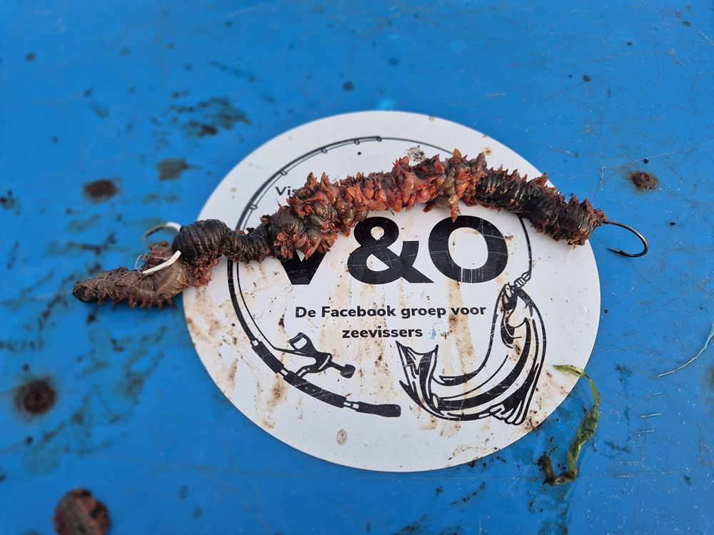 Ik maak gebruik van de pennelrig omdat we met het grovere aas vissen en proefondervindelijk kwamen we erachter dat de rog vaker aan de pennelhaak vastzat dan aan de geknoopte. Je zou ook kunnen opteren voor een ‘Dongle rig’ natuurlijk: hierbij kun je een groot stuk aas aanbieden dat net als bij het karperen op een hair zit gebonden. Een verschil is wel dat je in dit casus de lengte van de hair gebruikt om er twee of drie steekzagers tegenaan te binden. Qua werpgewicht ben ik altijd wat aan het zoeken. De ene dag moet het aas doodstil op de bodem liggen met een klapankerlood, en de andere dag pakken ze het terwijl ik het aas laat rollen met een rollood. Het kan behoorlijk stromen in de Oosterschelde en daarom pak ik altijd tussen de 175 en 210 gram, afhankelijk van stek, tij, wind, enzovoort.