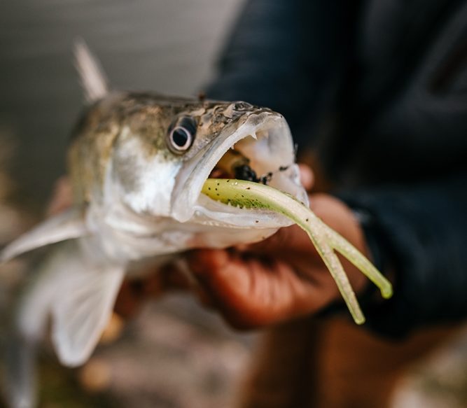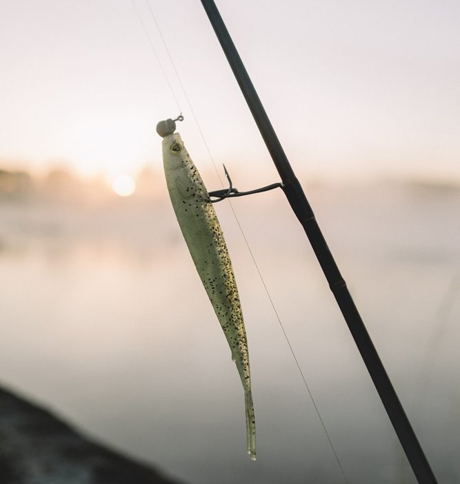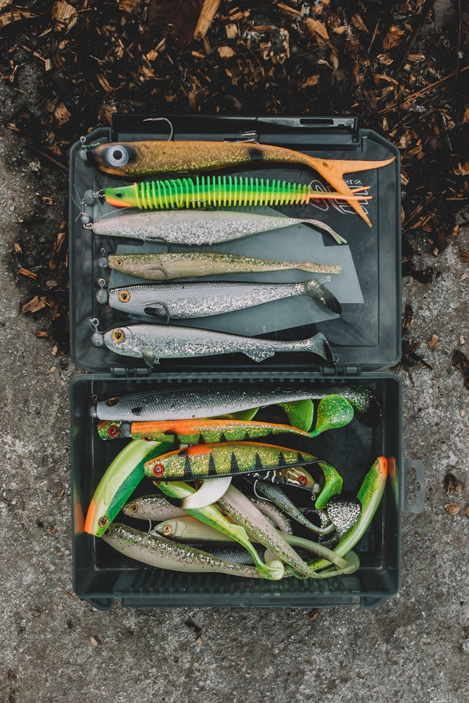 Ook het kunstaasassortiment hebben we beperkt gehouden. We visten bewust met klein kunstaas, tussen de 10 en 15 centimeter en met loodkopjes tussen de 12 en 25 gram.