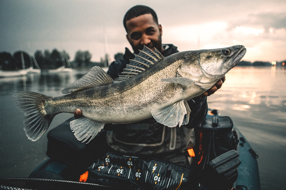 “We moeten volgens mij veel actiever vissen”, zegt Rob. “Relatief ondiepe zandstroken zoeken en lange drifts maken.” Menno knikt. “En dan inwerpen en binnen vissen. Dat getokkel op de bodem levert niets op.”