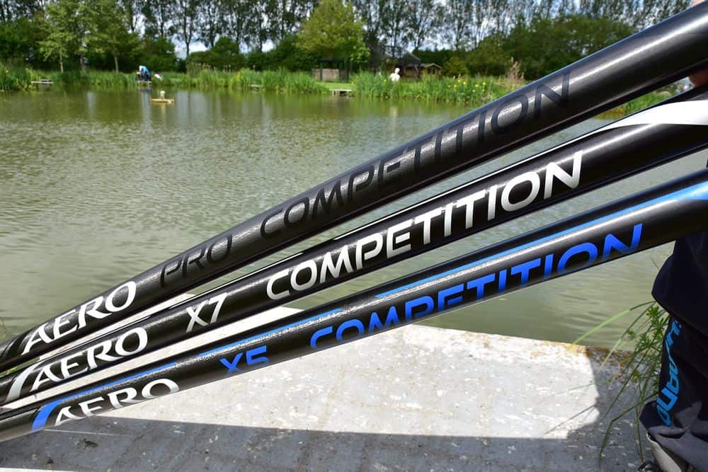 Dit jaar komt daar dus verandering in en het bedrijf brengt drie nieuwe vaste hengels op de markt in verschillende prijsklassen: de Aero X5, de Aero X7 en de Aero Pro. De Aero Pro is het paradepaardje in de serie en ook de hengel in de duurste prijsklasse. Deze hengel is verkrijgbaar tot 16 meter wat eigenlijk speciaal voor de Engelse markt is gedaan en ook op sommige van onze commerciële vijvers kun je hem tot op die lengte gebruiken.