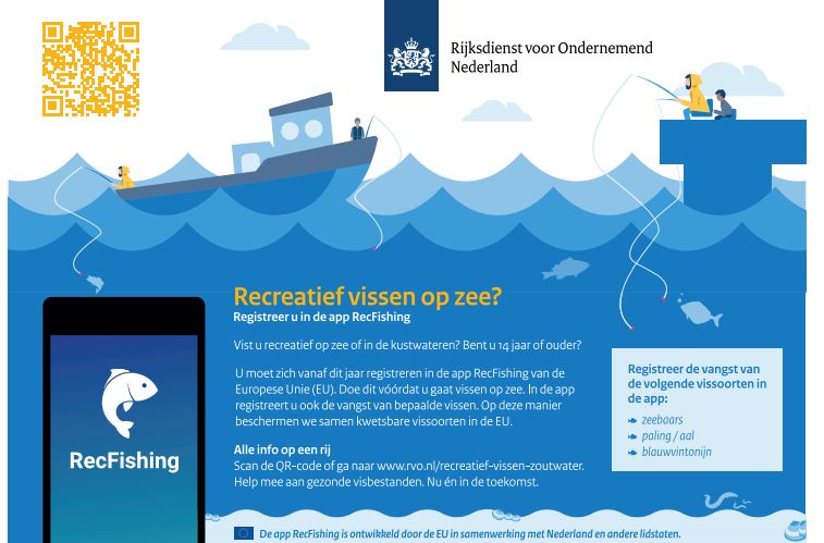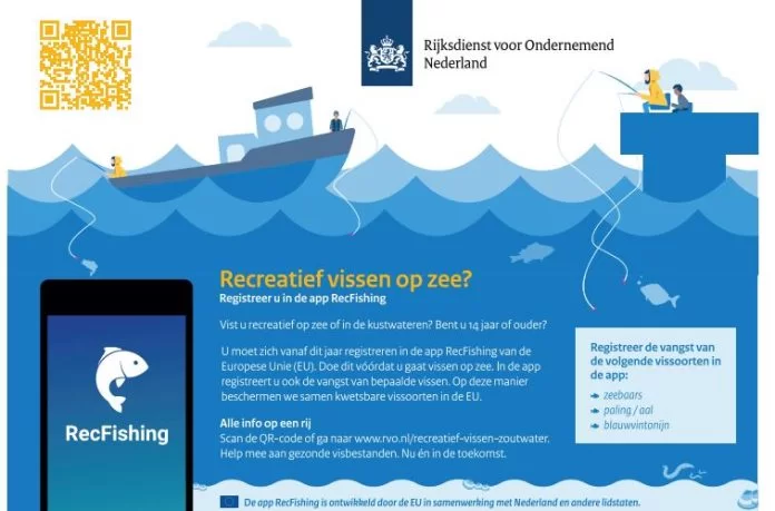 De Europese Commissie heeft de app RecFishing voor recreatieve vissers in zoute wateren ontwikkeld. Vis je recreatief in de kustwateren, het zeegebied of de Visserijzone? En ben je veertien jaar of ouder? Dan registreer je je altijd in deze app. Ook wanneer je al geregistreerd staat bij een sportvisorganisatie of hengelsportvereniging. Tijdens het vissen kunnen toezichthouders je vragen om jouw app-registratie op jouw mobiel te laten zien. Vanaf 2026 ben je verplicht om in elk geval de vangsten van de volgende vissoorten in de app te registreren: zeebaars, blauwvintonijn en paling/aal. Je kunt de app gratis downloaden in de App Store (iOS) en Google Play (Android). Informatie: www.rvo.nl/onderwerpen/recreatieve-visserij-zoutwater.