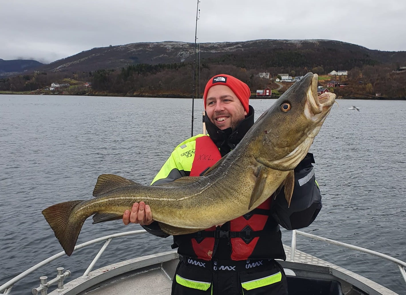 Ik ben vandaag met Ard en Arjan op pad. Om 7 uur hadden we afgesproken om te vertrekken. Eerst was het even zoeken naar wat koolvis als aas. Dat verloopt niet heel soepel maar aan het einde van de Straumen weten we er toch een paar te strikken. Arjan maakt het helemaal bont. Wanneer hij een aasvis aan zijn koolvisonderlijn heeft krijgt hij ineens een enorme beuk op zijn hengel. Nadat hij na 10 minuten de enorme kabeljauw naar boeven heeft weten te drillen halen we het enorme beest uit het water en zit de levende koolvis nog in de bek van de kabeljauw.