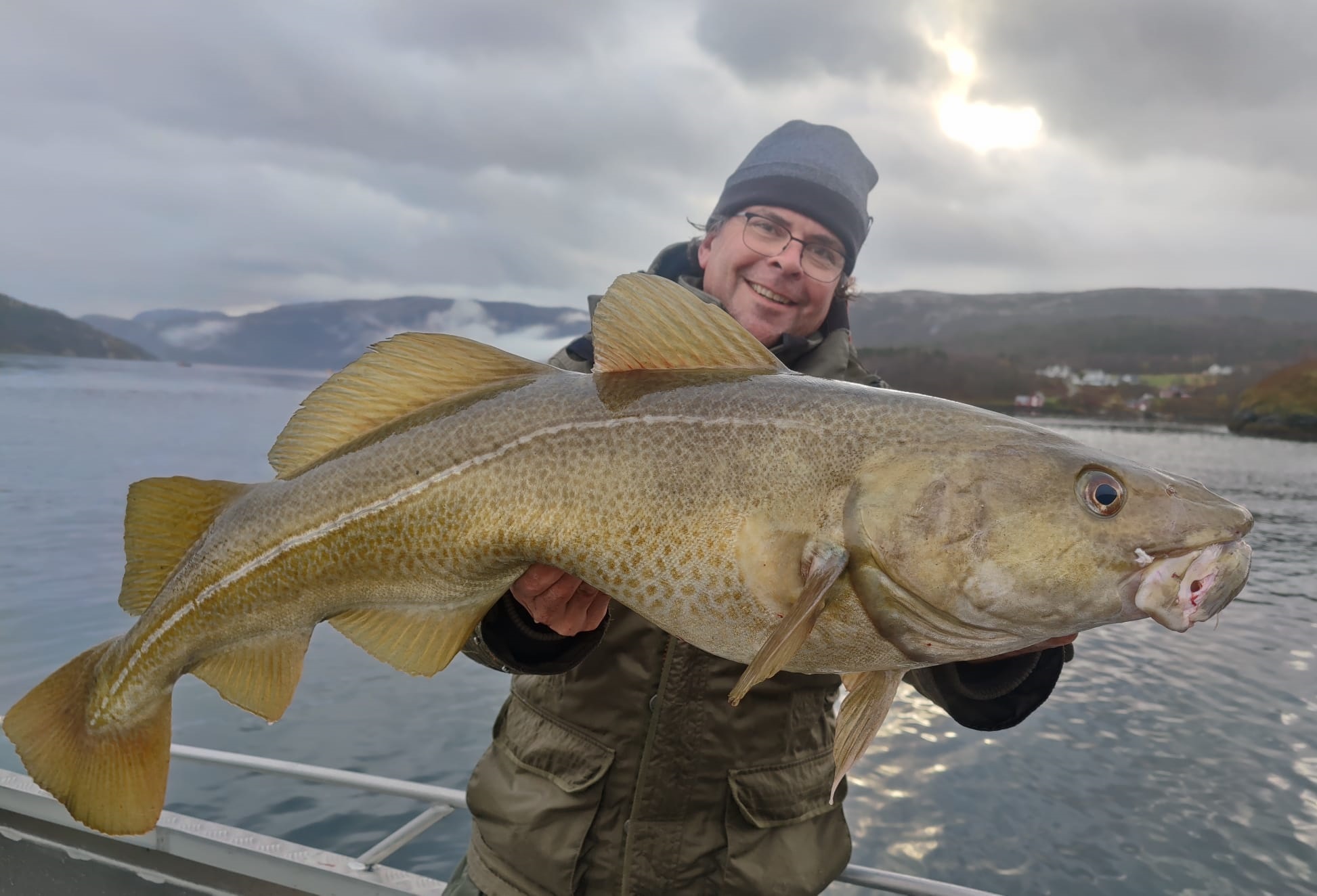 Zelf probeer ik dicht bij de grond en via het opdraaien van mijn shad en pilker door de waterkolom wat groots te pakken te krijgen. Dat lukt al snel. Allereerst meldt een mooie koolvis zich en even later krijg ik vlak boven de bodem een enorme beuk en gaat iets groots er dwars door de slip heen vandoor. Dat blijkt na een pittige dril een zeer respectabele kabeljauw te zijn, een prachtvis!