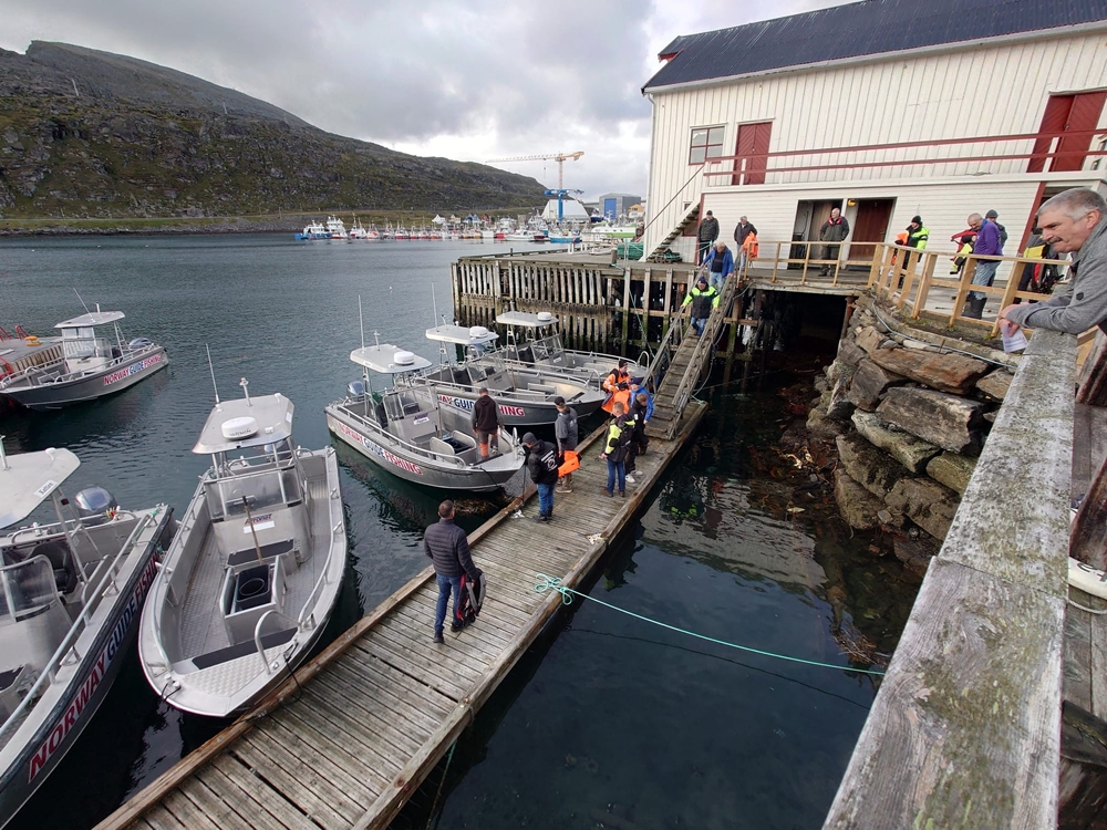 We konden natuurlijk niet overal heen, maar aan de zuidzijde van het noordelijk gelegen eiland Hjelmsøya was het mogelijk om te vissen. En dat is beter dan binnen zitten. Dus om 10 uur hebben we de veiligheidsbriefing gedaan met betrekking tot de regels van dit viskamp. En daarna mochten we eropuit.