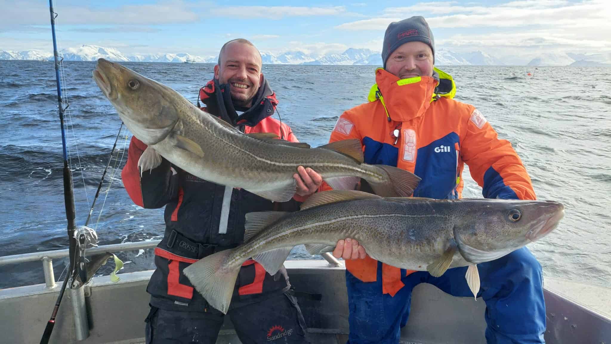 De hele dag door hebben we skrei gevangen. Niet de hele grote knoepers, maar vissen van 80 à 90 cm, met af en toe een uitschieter. Misschien komen de big mama’s de komende dagen wel. Gedurende de ochtend hebben we de buit binnen voor de vriezer en konden we vissen gaan terugzetten, dat voelt ook wel goed.