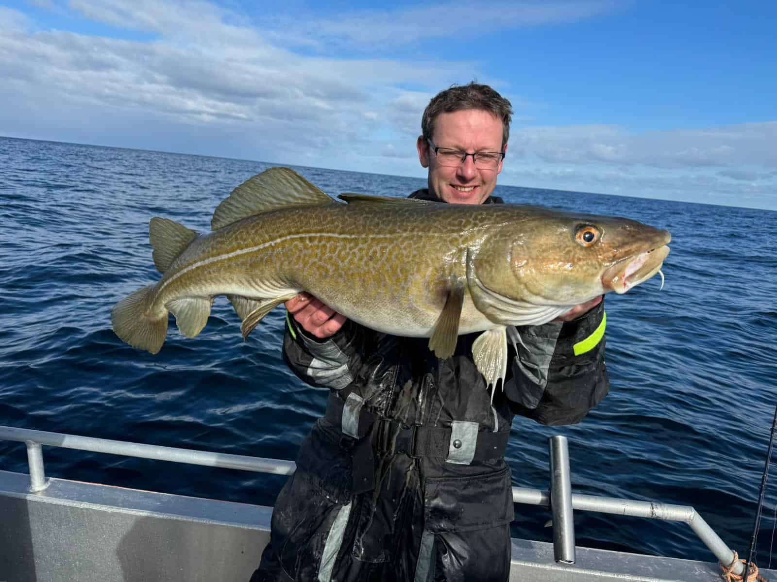 Arie, Rob, Frank en Gerard zijn zuidwestelijk van Flua geweest en hebben daar een paar hele mooie lange driften gemaakt waarbij er continu vis bovenkwam. Wat erg jammer was is dat Gerard wederom een grote heilbot haakte. Eerst dacht hij vast te zitten totdat er heel gestaag een stoomtrein op gang kwam onderwater. Helaas loste de haak al snel, maar dit was wederom het bewijs dat er hele grote jongens rondzwemmen. Arie was de bofkont deze dag en waarschijnlijk ook deze week, want hij plukte net voor het eindsignaal nog even een kabeljauw van 132 cm weg! Wat zou deze dame gewogen hebben in de paaitijd? Gefeliciteerd Arie!