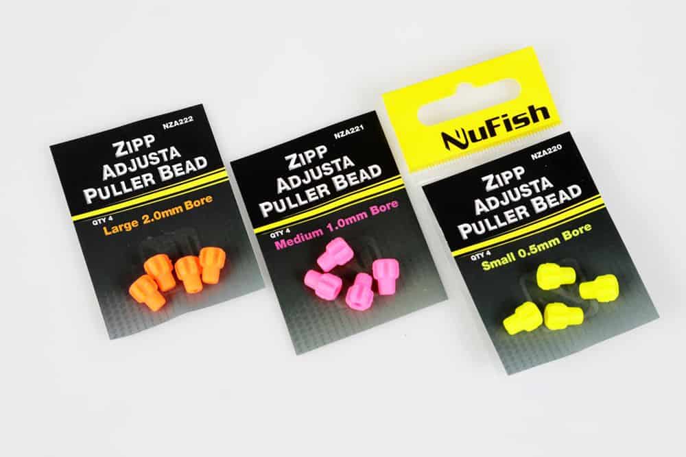 De NuFish Zipp Adjusta Puller Bead uit het assortiment van JV Baits is een kraal voor duaal gebruik. De kraal is in de eerste plaats ontworpen als elastiek puller kraal, maar met het extra voordeel dat hij drie verschillende boorgaten (small, medium en large) heeft voor verschillende maten elastiek.