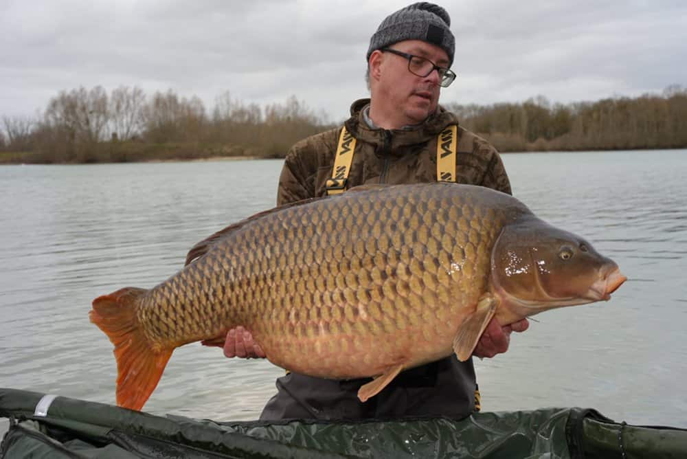 Sinds zaterdag was Gregor uit Duitsland te gast op Fully’s Lake. Hij had het meer exclusief afgehuurd… en dat legde hem geen windeieren. Tot op ’t moment van schrijven (maandagmiddag) wist hij al twaalf karpers te vangen, waarvan verschillende exemplaren boven de 15 kg en de topvis van 32 kg.