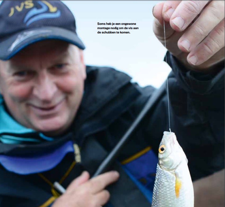 Nu zijn we weer terug bij het onderwerp van dit artikel; de juiste aasaanbieding is alleen te bereiken door de loodhageltjes op de juiste manier over de lijn te verdelen. Vaak dien je bij deze techniek een zo licht mogelijk dobbertje te gebruiken. Hoe meer lood op de lijn, des te sneller alles naar beneden zinkt. Mijn advies? Gebruik nooit al te grote hageltjes! Gebruik er liever wat meer die kleiner zijn en verdeel de hageltjes goed over de lijn. Zorg er altijd voor dat het onderste loodhageltje tegen de lus zit van de onderlijnbevestiging. Alleen wanneer je echt geen aanbeet weet te krijgen, terwijl je weet dat de vissen er wel zijn, kun je de montage veranderen, bijvoorbeeld door alle loodjes wat verder van de haak te schuiven. Maar pas op: hoe verder de loodjes van de haak zitten, des te groter de kans op gemiste aanbeten. Gebruik hier al je visverstand! Met name nu komt het aan op zo goed en effectief mogelijk vissen. ”