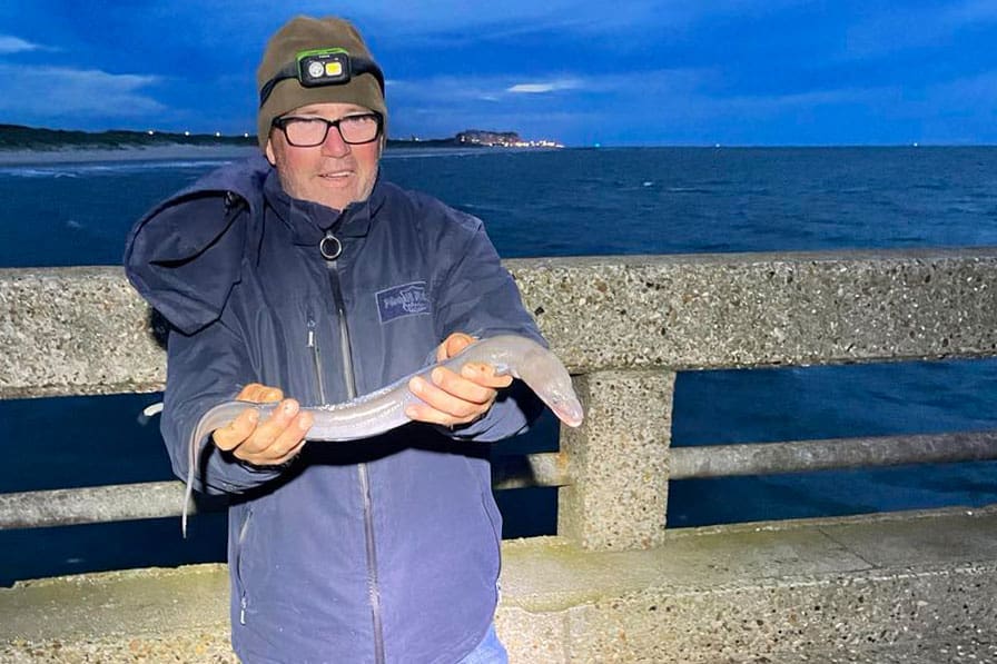 De voorbije jaren kwamen er al meerdere meldingen uit Nederland, met name vanuit het havengebied van IJmuiden, maar gisteren dook er ook een exemplaar op in België. Ronny Oosterlynck was de gelukkige en hij ving de vis als bijvangst bij het zeebaarsvissen op het betonnen staketsel van Blankenberge. Ronny bood een grote steekzager aan via een wapperlijn met een dikte van 50/00 mm. Groot was deze vis (nog) niet – Congers kunnen wel drie meter lang worden, bij een gewicht van meer dan 100 kilogram.