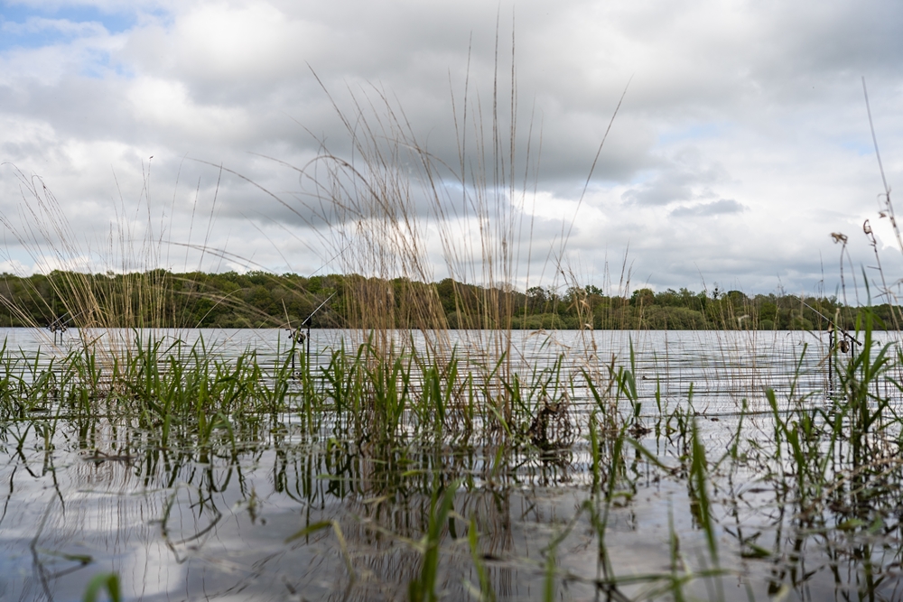Bij aankomst vallen ons twee stekken direct op, de eerste stek is een soort landtong waarbij je het centrale deel van het meer goed kunt afvissen, de tweede stek oogt nog beter, een uitstekende punt met aan beide kanten van de uitloper een talud wat vol staat met waterplanten. Deze stek zorgt direct voor het goede gevoel, op het hele water is er geen wier te zien en hier staat het vol. De vis zal zich hier schuilhouden en richting de paai is de kans groot dat ze hier graag willen zijn.