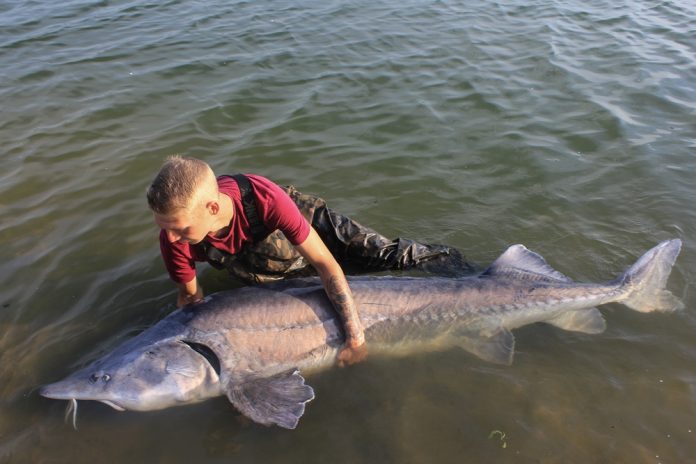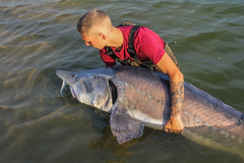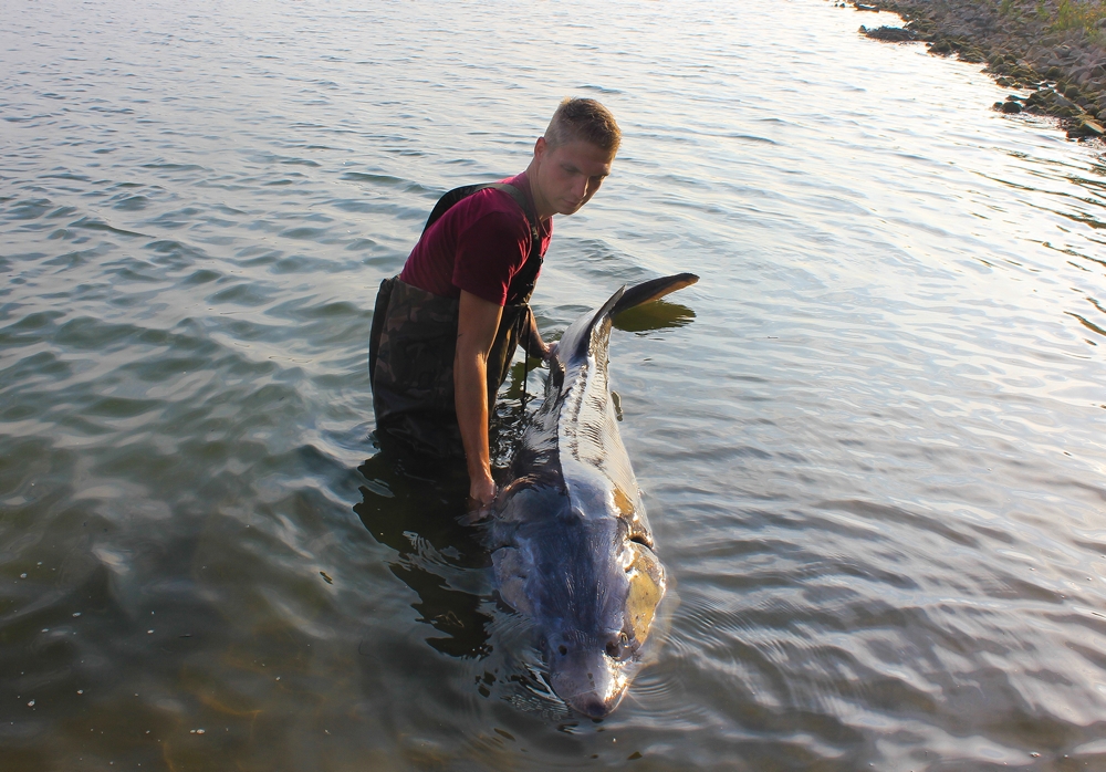 Tijdens eerdere sessies had ik hier als enkele steuren gevangen, maar dit was duidelijk veel groter en lomper dan die 60 kilo steur van een jaar terug. Een hevige dril volgde waarbij ik zelfs drie keer bijna over de kant het water in werd getrokken terwijl ik volop in de hengel moest hangen om alles een beetje onder controle te houden. Gelukkig duurde de dril met het zwaardere materiaal dit keer ook niet langer dan 20 minuten en bleef ik de eerste seconden vol verbazing kijken wat ik nu weer gevangen had. Het enige wat ik tegen mijn vismaat zei was: “wat is de grootste steur van het water?” Na een hoop moeite om de vis in bedwang te houden in het water tijdens het opmeten, kwam de vis, een Beluga steur, toch echt op 236 cm uit! Vier centimeter meer dan de grootse steur tot dan toe gevangen door ervaren steur- en meervalvissers. Het meerrecord was verbroken!