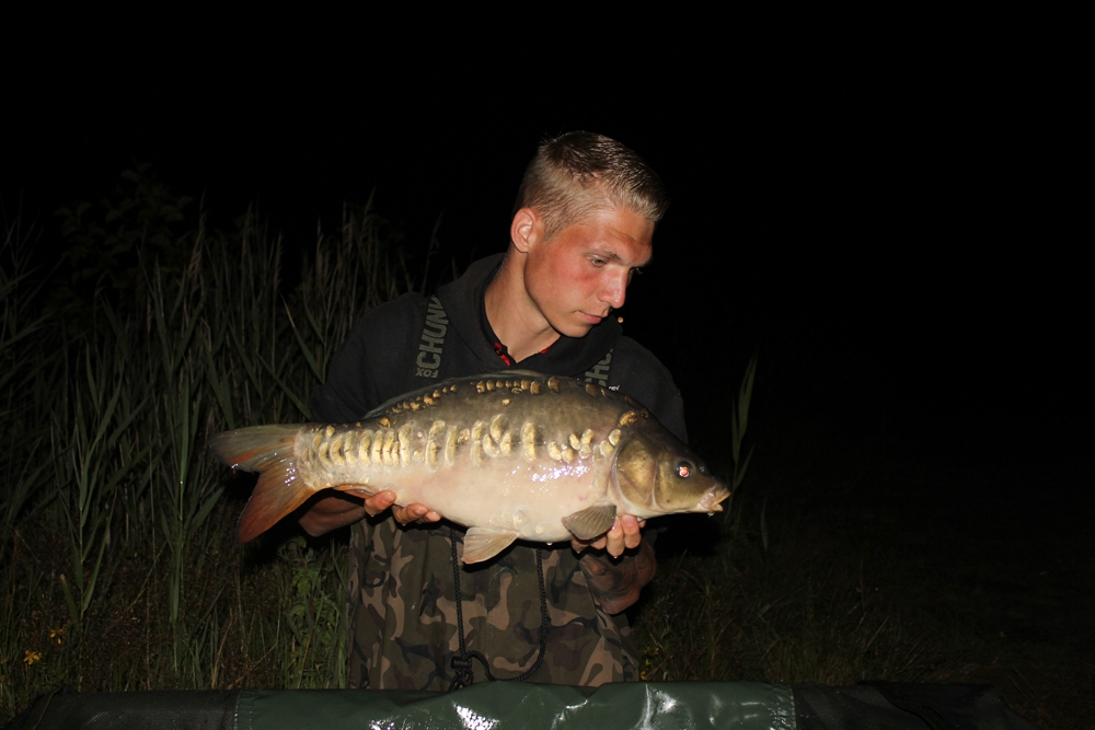 De dagen erop bleven helaas zeer rustig totdat de buren die donderdagavond genoodzaakt waren in te pakken en wij onze kansen konden (ver)spreiden waarna er vrij snel al een nieuwe run volgde, ditmaal op een van de hengels van Maarten en niet veel later mocht ik zijn eerste kleine spiegeltje van de sessie scheppen. Vlak daarna liep dezelfde hengel nog een keer af en was het mijn beurt om een tweede kleine spiegel te landen. Prachtige visjes voor de toekomst! Helaas bleef het die avond en nacht weer stil. De sessie zou eigenlijk de volgende ochtend aan zijn einde lopen, maar gelukkig mochten we nog twee extra nachten blijven zitten. Top!